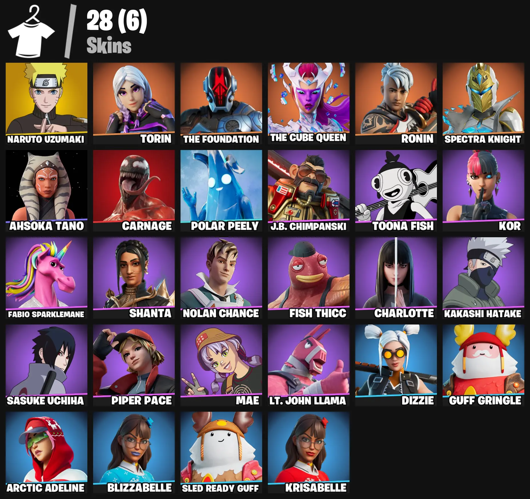 ⚔️ Fortnite ✔️ 28 SKINS (PC/PSN/XBOX) ⚔️ NARUTO UZUMAKI 🗡️ KAKASHI HATAKE 🌌 SASUKE UCHIHA 😈 TORIN 🍌 THE FOUNDATION 📩 THE CUBE QUEEN 🤖 RONIN ⚔️ Complete Access ⚔️ Instant Delivery !MKG011401