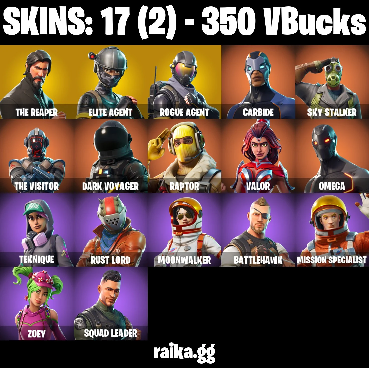 ⭐ Inactive for 4 years | PC/PSN/XBOX | 17 skins | The Reaper | Elite Agent | Rogue Agent | Carbide | Sky Stalker | The Visitor | Dark Voyager | Raptor | Valor | Omega | Teknique | 350 VB