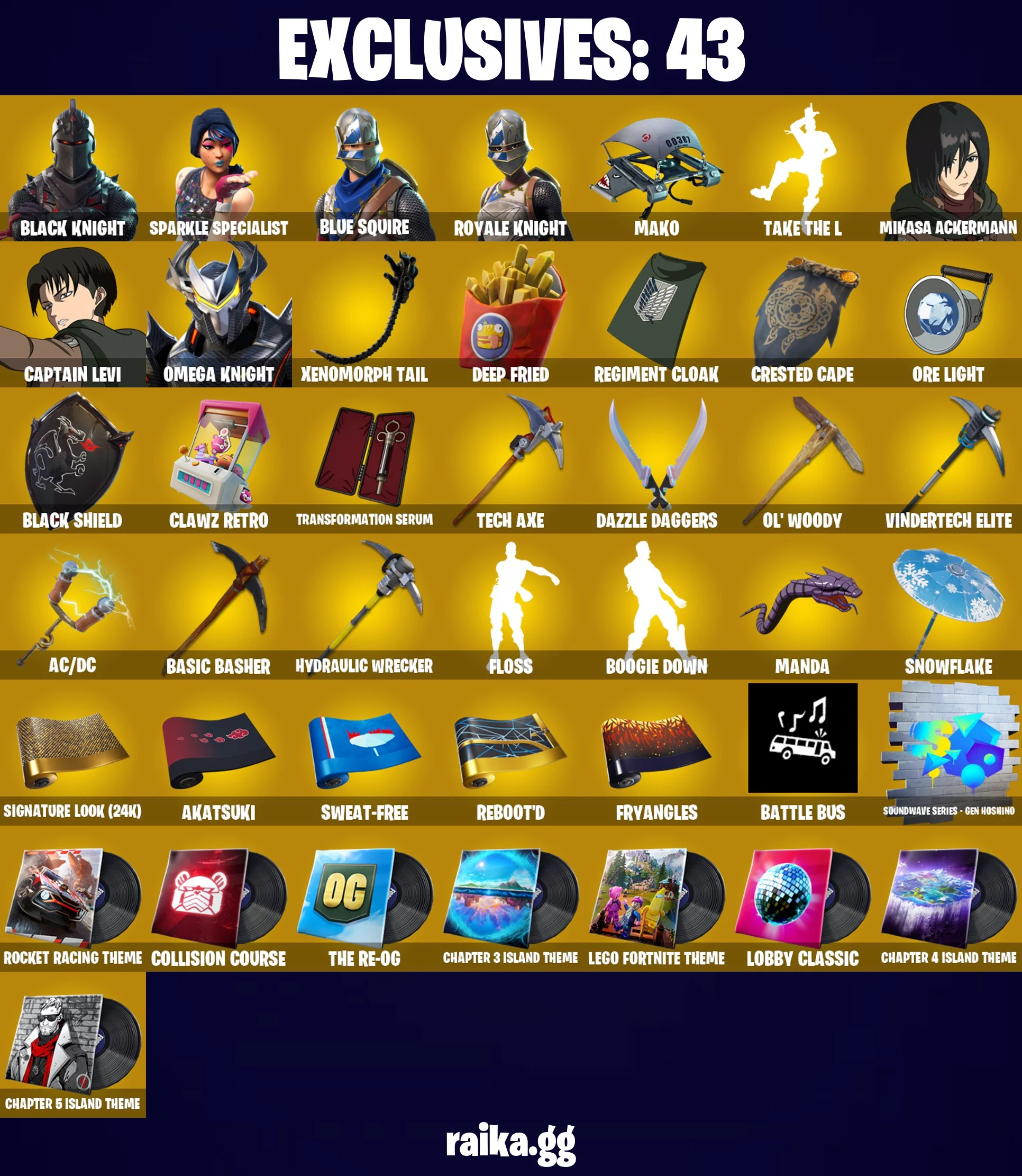 π₯𧨠OG ACCOUNT π§¨π₯ 81 skins π Black Knight π Sparkle Specialist π Blue Squire π Royale Knight π Mako π Take The L π Renzo the Destroyer π Battle Hound π Malik π The Ageless π Ragnarok π PC\PSN\XBOX\SWITCH π