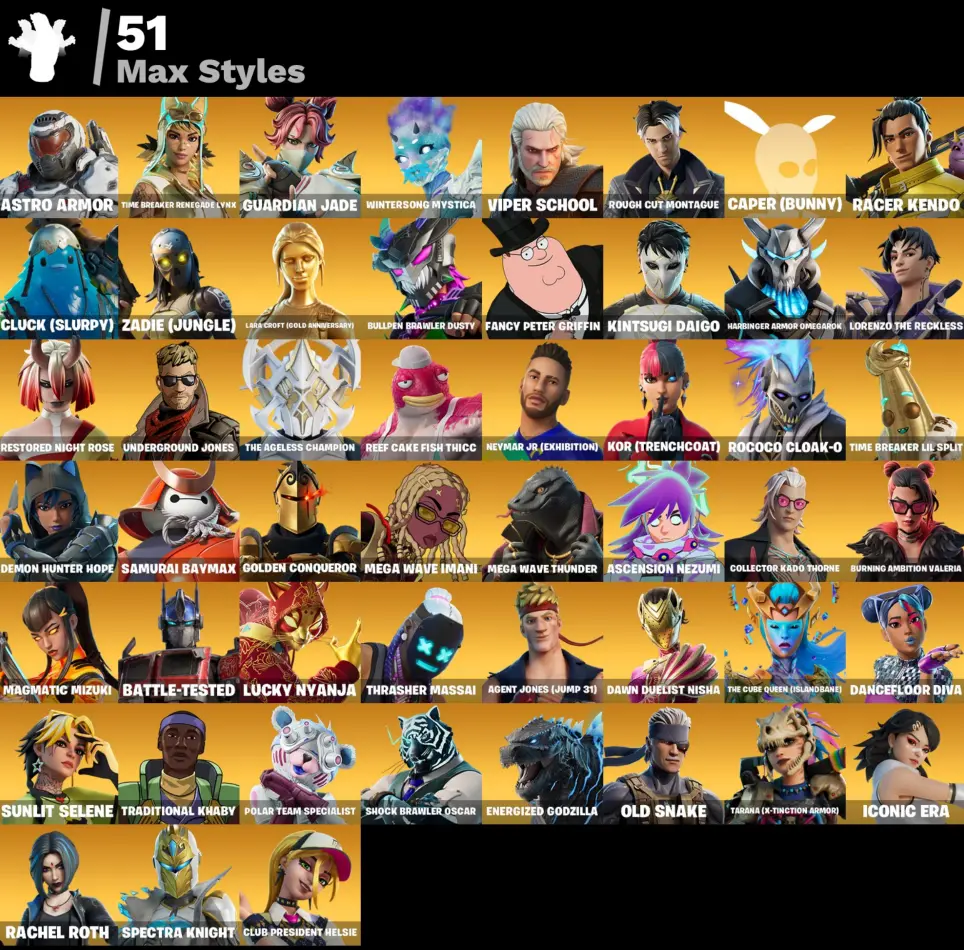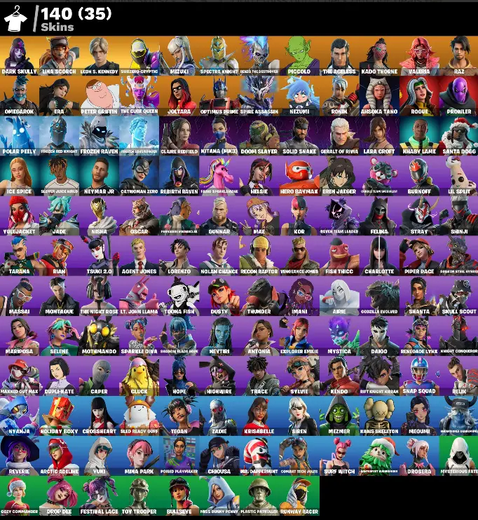 (PC PSN XBOX) 140 SKINS / LEON S. KENNEDY / FA / Dark Skully | Lina Scorch | Subzero Cryptic | Joltara | Raz | Spectra Knight | Kado Thorne | Nezumi | The Ageless | 300 VB / JOLTARA / LARA CROFT / ETEN JAEGER