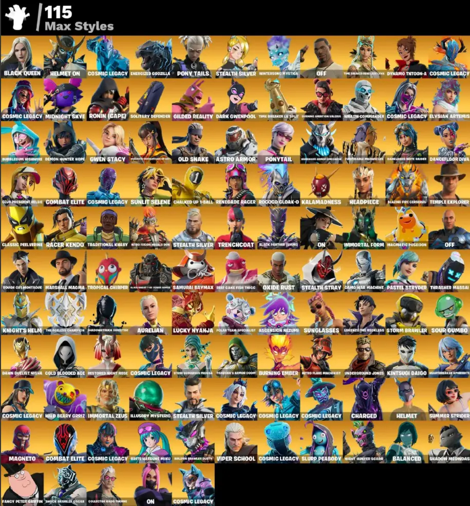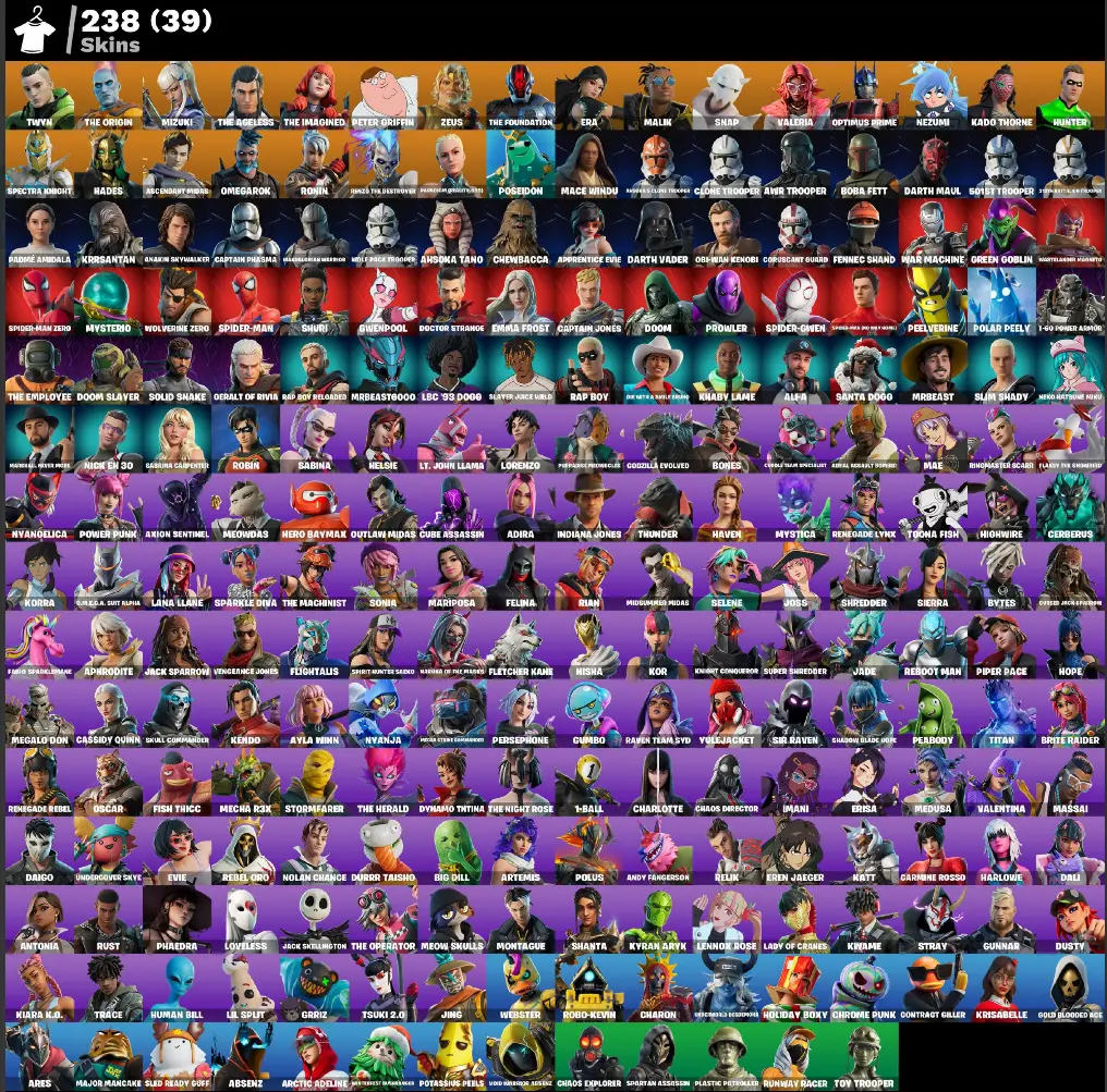 (PC PSN XBOX) 238 skins | Twyn | The Origin | Mizuki | The Ageless | The Imagined | Peter Griffin | Zeus | The Foundation | Era | Malik | Snap | Valeria | 1950 VB