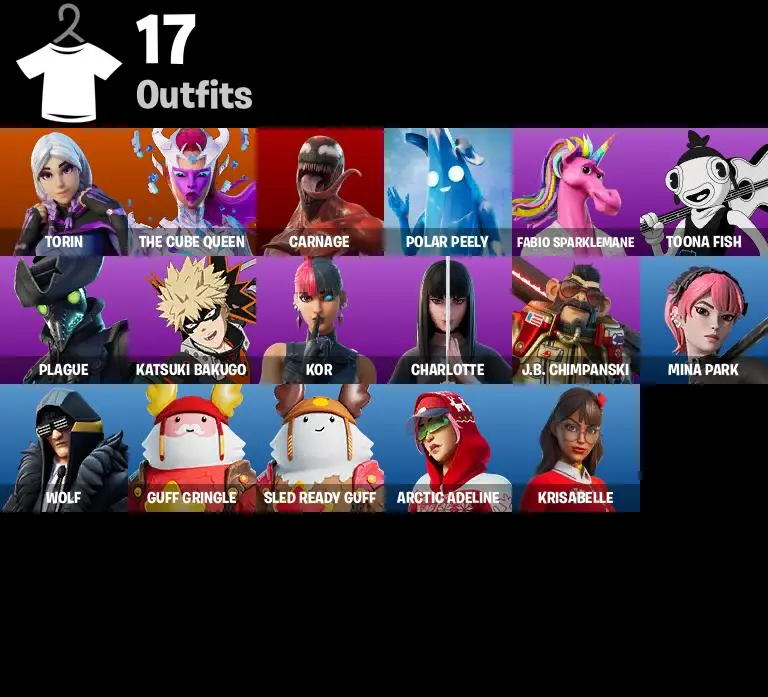 【PC/NS/XBOX/PSN】 17 skins 🔥 Torin 🔥 The Cube Queen 🔥 Carnage 🔥 Polar Peely 🔥 Kor 🔥 J.B. Chimpanski 🔥 Toona Fish 🔥 Plague 🔥 100 VB