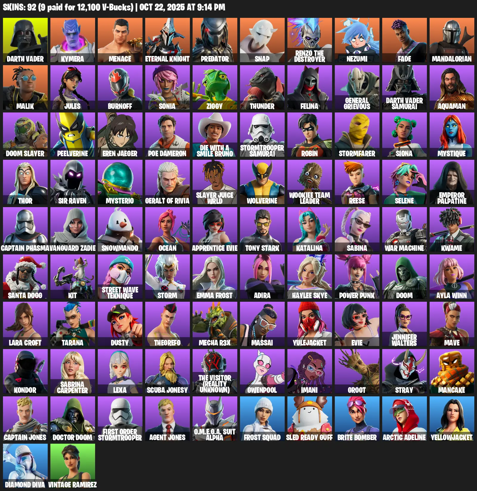 [PC/PSN] | 92 skins | 600 V-bucks | Leviathan Axe | Lara Croft | Darth Vader | Kymera | Menace | Eternal Knight | Predator | Snap | #GXS6601 | #MBFN