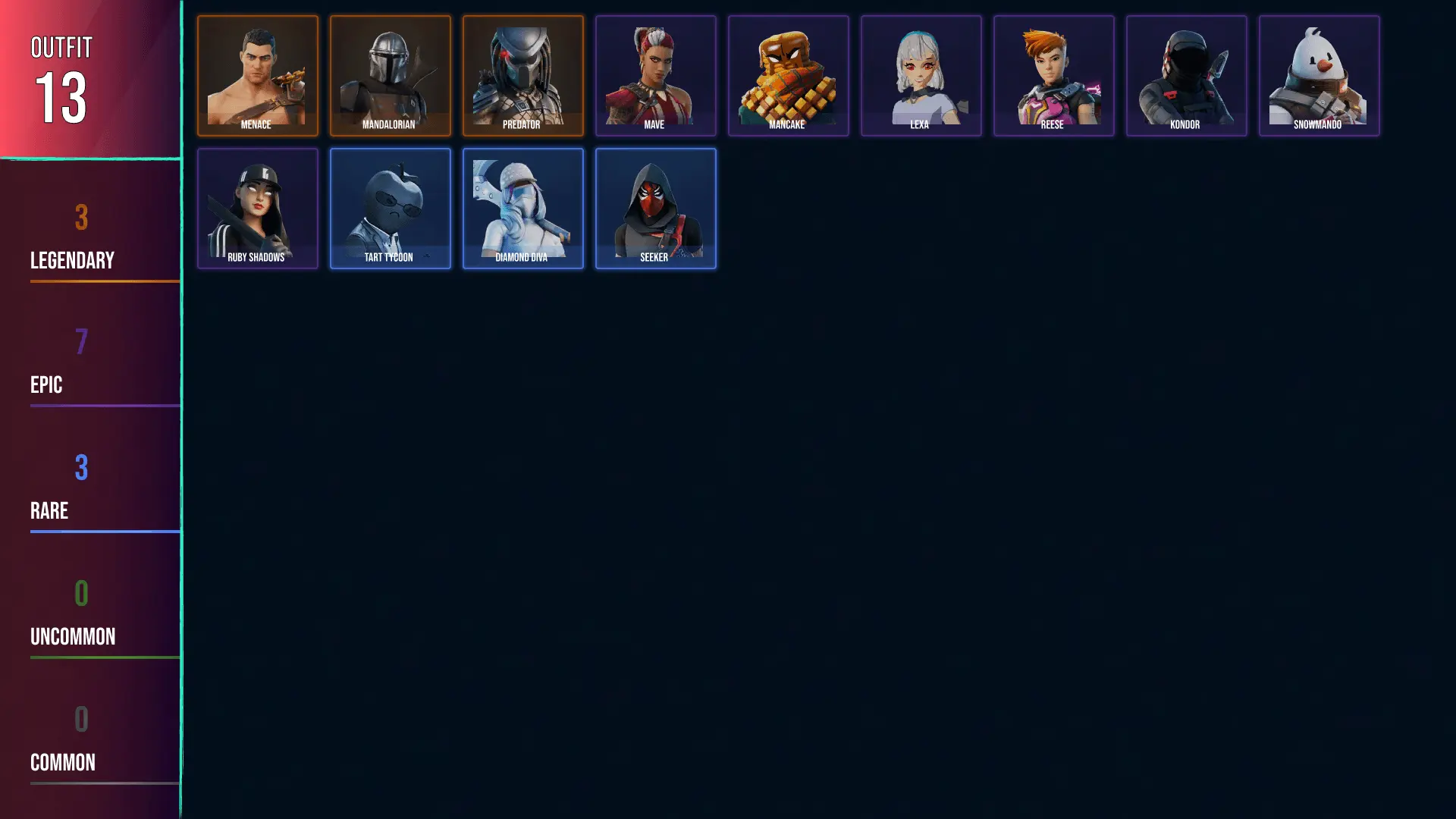 🥑 PC/PSN/XBOX 🥑 13 SKINS 🥑 Menace 🥑 Mandalorian 🥑 Predator 🥑 Mave 🥑 Mancake 🥑 Lexa 🥑 Reese 🥑 Kondor 🥑 Snowmando 🥑 Ruby Shadows 🥑 Tart Tycoon 🥑 Diamond Diva 🥑 Seeker 🥑 150 VBUCKS 🥑 Ff7zi 🥑