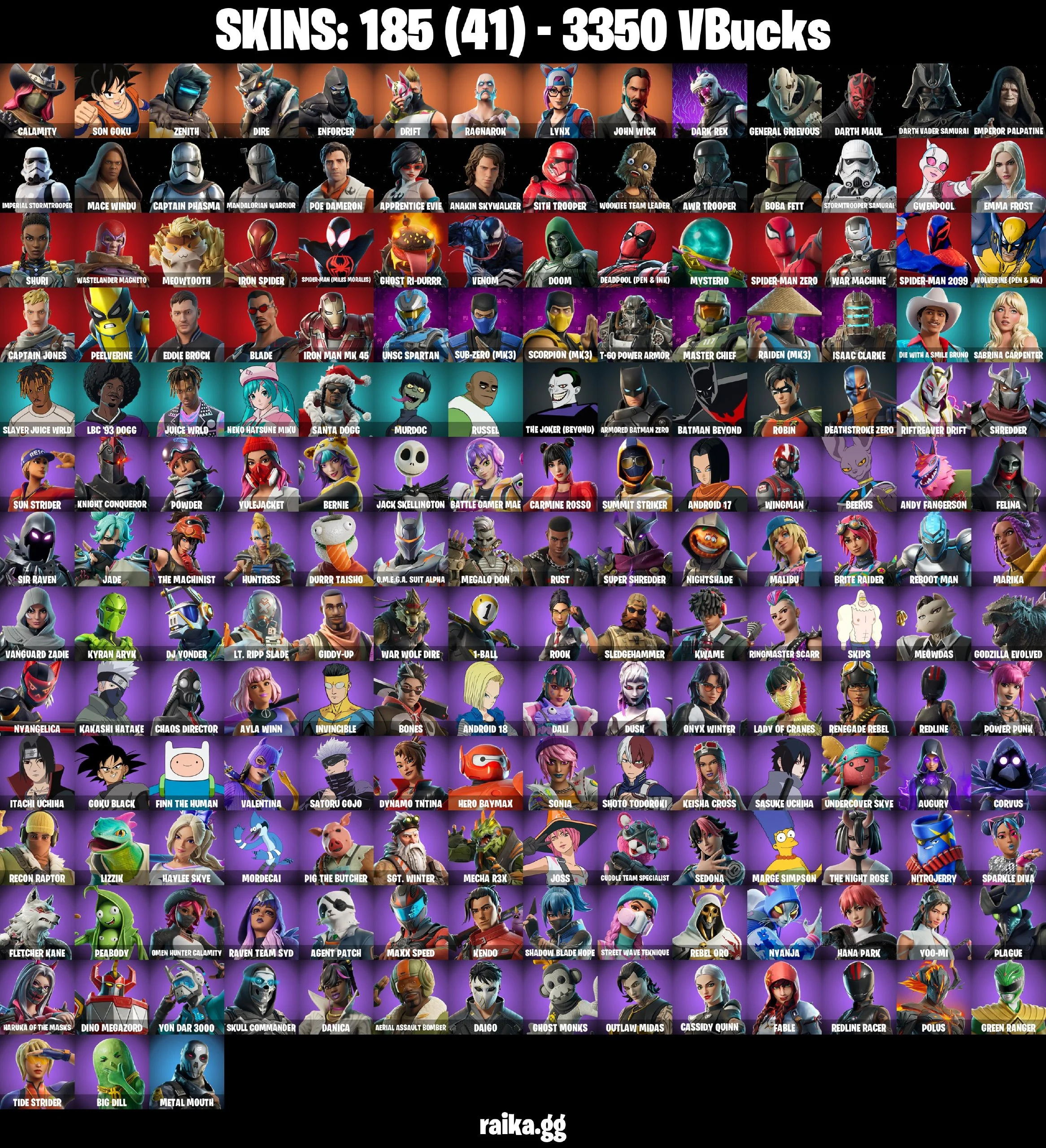 [PC/PSN/XBOX] 💻 185 Skins👕 | Master Chief🎮 | Calamity🤠 | Son Goku⚡ | John Wick🖤 | Darth Maul🔴 | General Grievous🤖 | 3350 VBucks💸