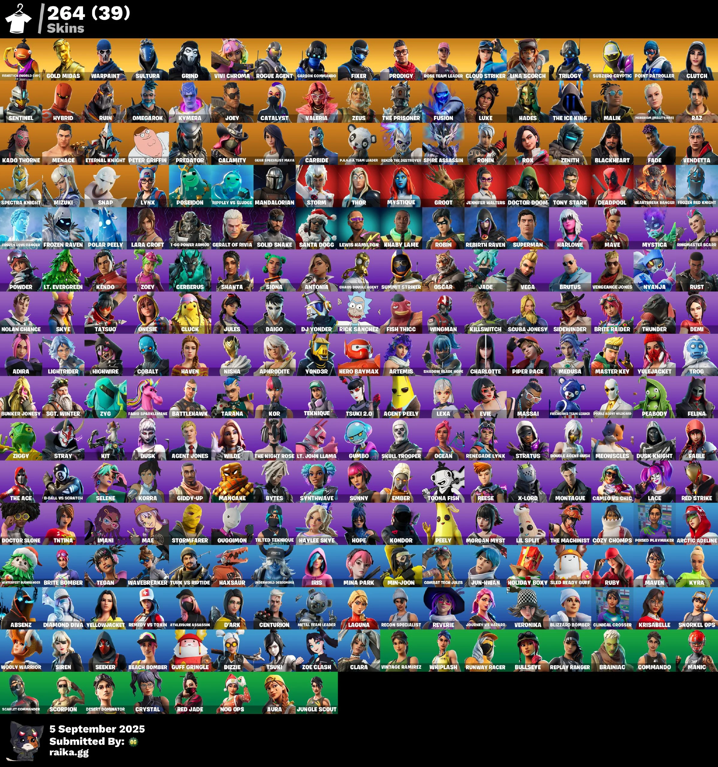 ⭕️ PC/PSN/XBOX⭕️ 264 skins | OG STW | Fishstick (World Cup) | Gold Midas | Sultura | Grind | Vivi Chroma | Rogue Agent | Carbon Commando | Fixer | #S7