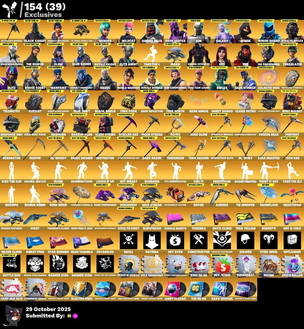 [PC/PSN/XBOX] 371 skins | 650 emotes | All Exclusives | OG STW | Galaxy | Ikonik | Black Knight | Galaxy | Wonder | 0 VB