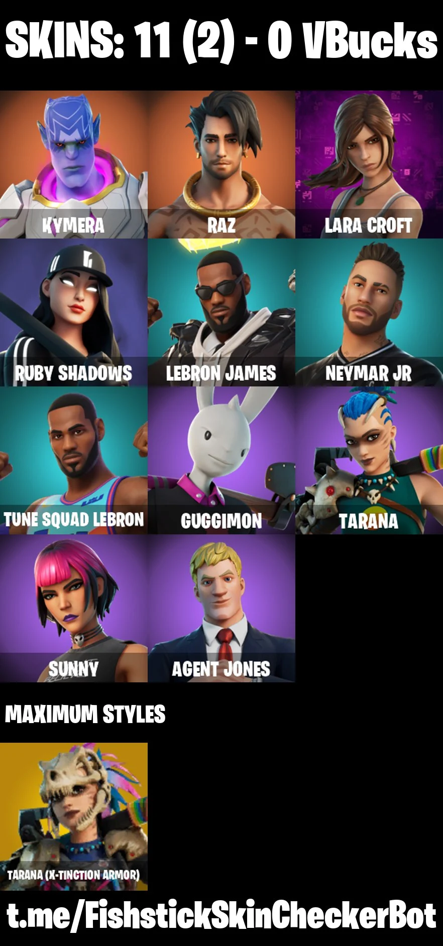 【PC/PSN/XBOX】11 Skins | Kymera | Raz | Lara Croft | Ruby Shadows | LeBron James | Neymar Jr | Tune Squad LeBron | Guggimon