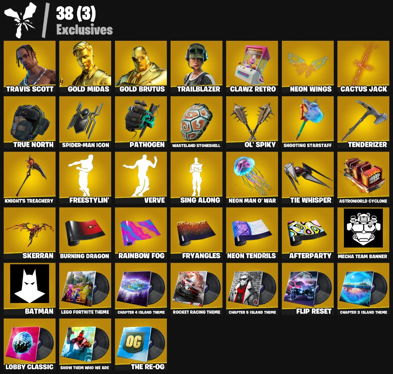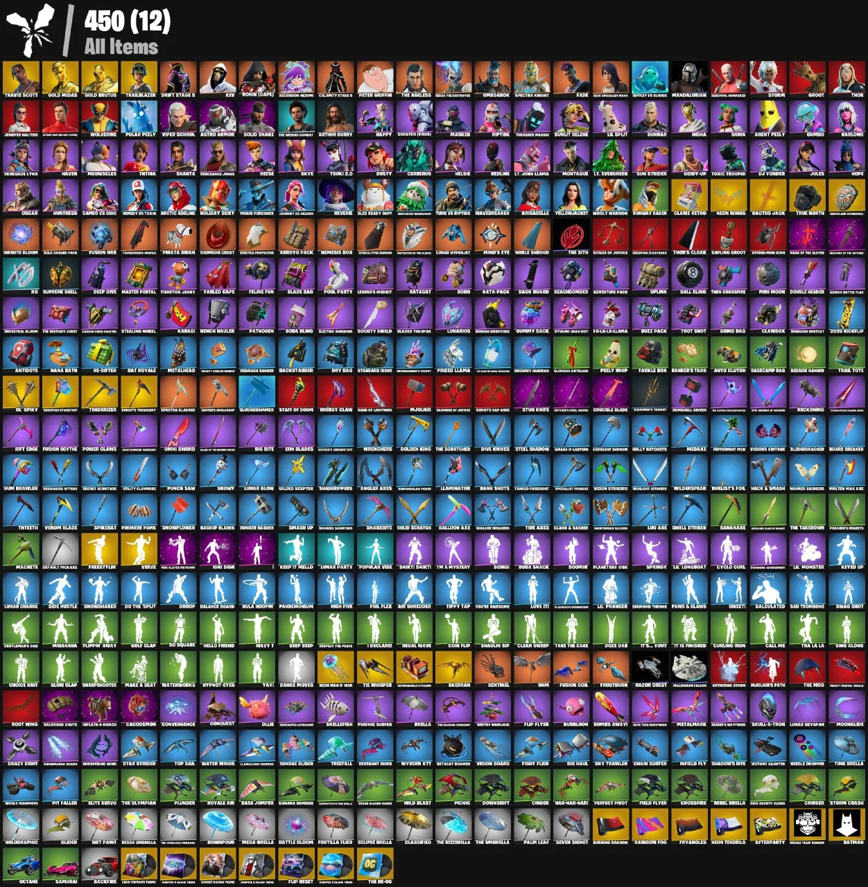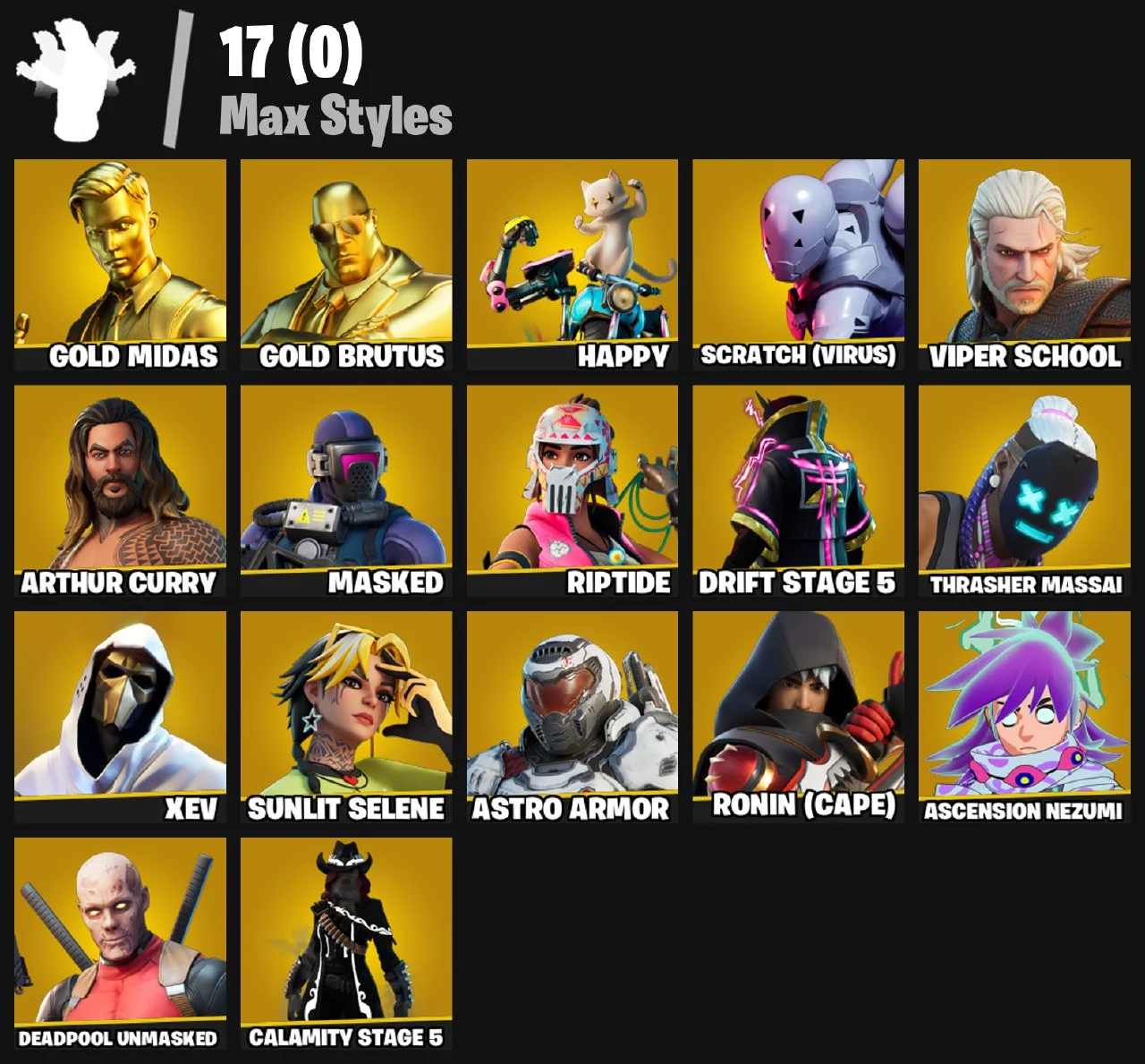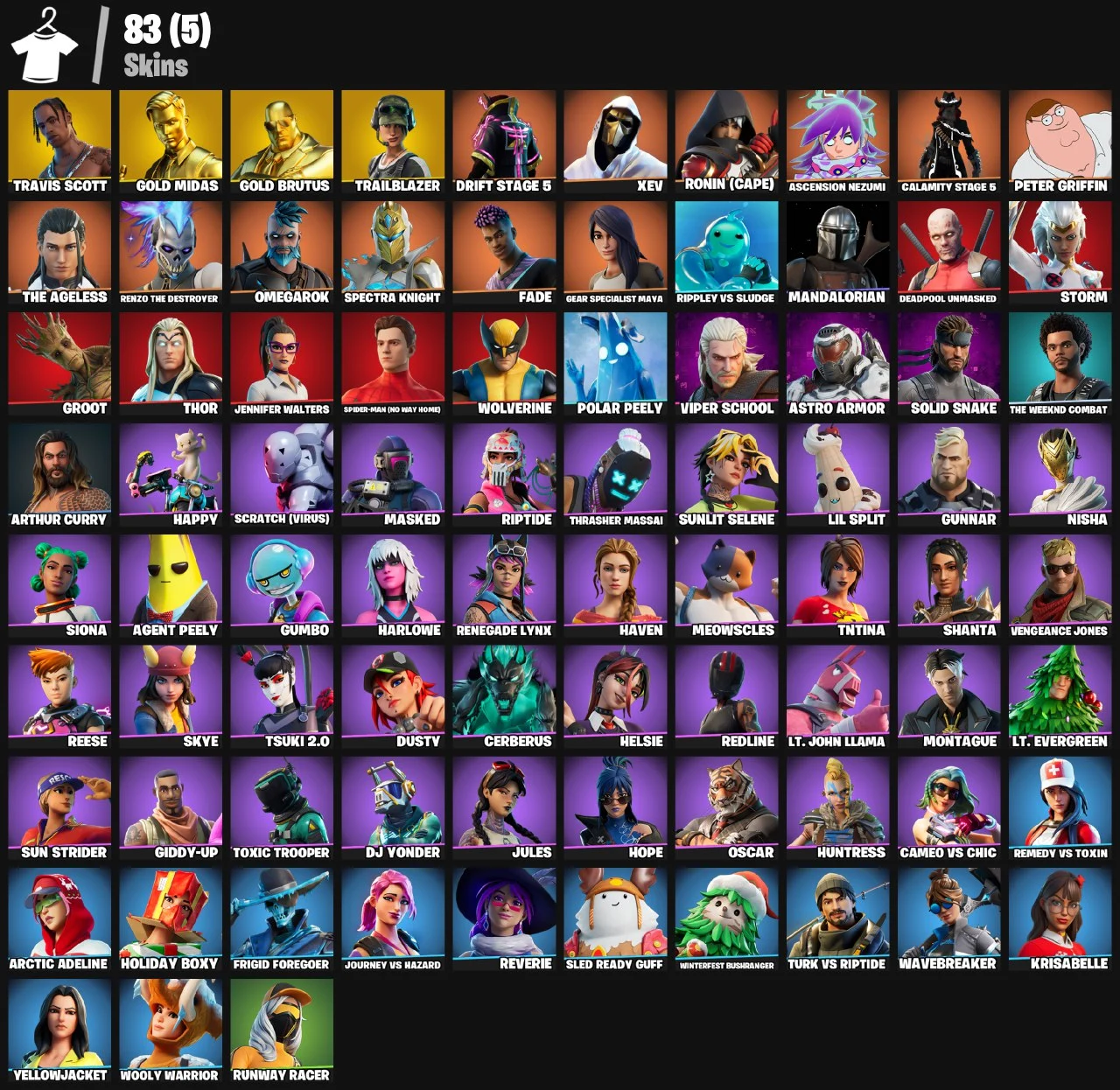 ⭕PC/PSN/XBOX⭕83 Skins + Travis Scott + Trailblazer + Drift + Calamity + Gold Midas M Yellowjacket + Meowscles + Deadpool + TNTNA + Reverie + Verve + Travis Scott Glider | 270 V-Bucks