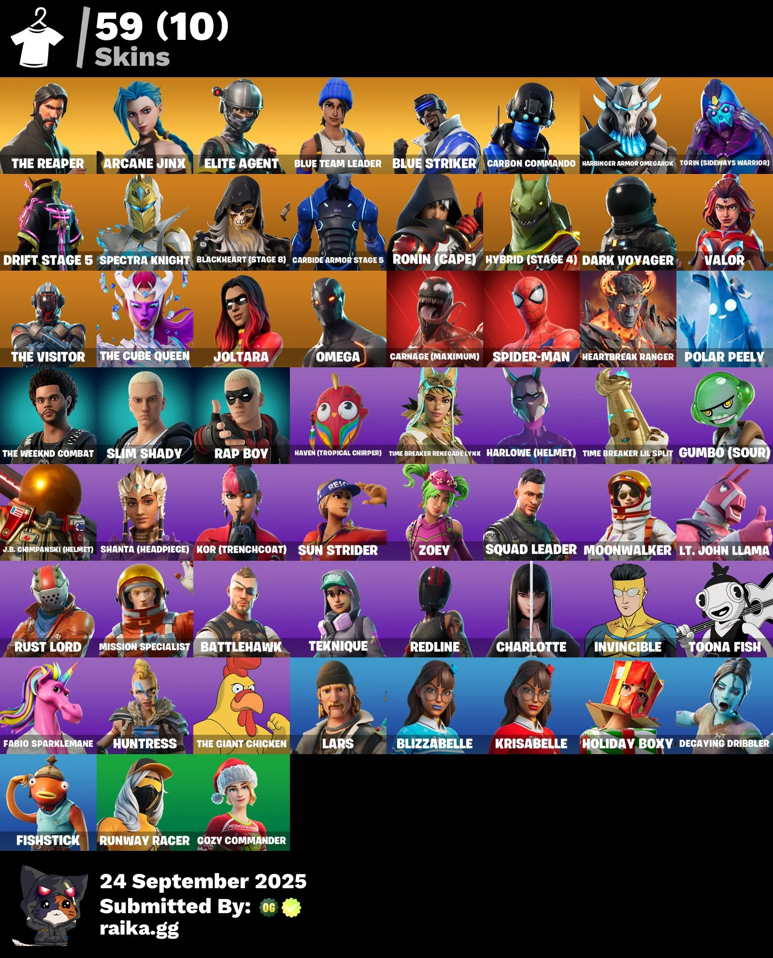 🔥 [PC/PSN/XBOX/NINTENDO] 59 skins | The Reaper | Arcane Jinx | Take The L | Elite Agent | Omega | Rap Boy | Get Griddy mssh107