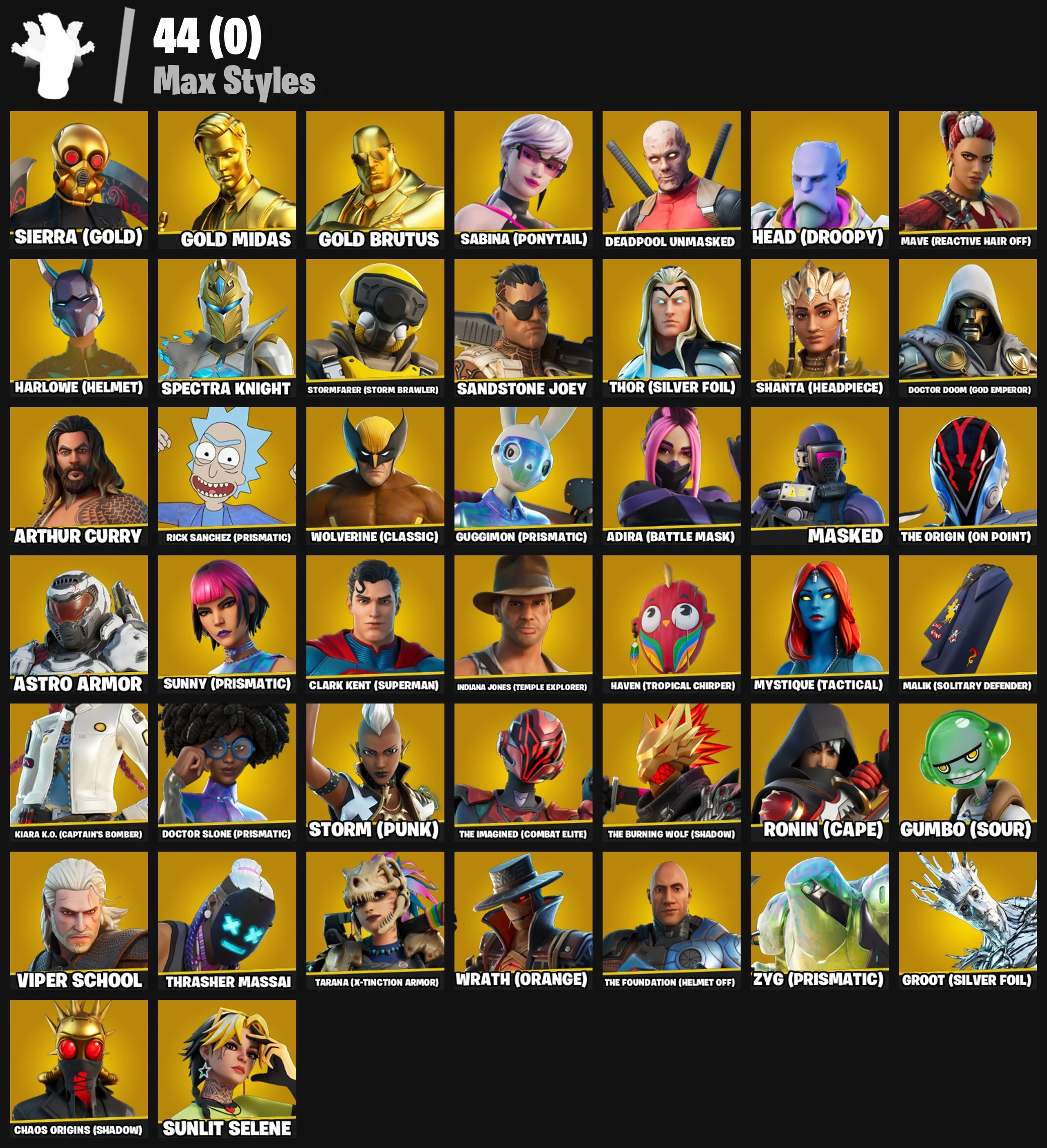 [PC/PSN/XBOX/SWITCH] 122 Skins | Gold Midas | Gold Brutus | Snake Eyes | Eddie Brock | Clawz Retro | Neon Wings | 200 VB ๐ Email Changeable