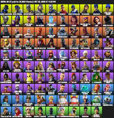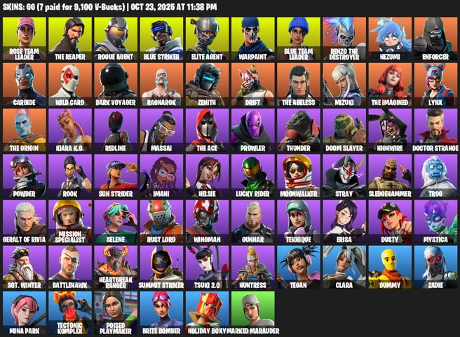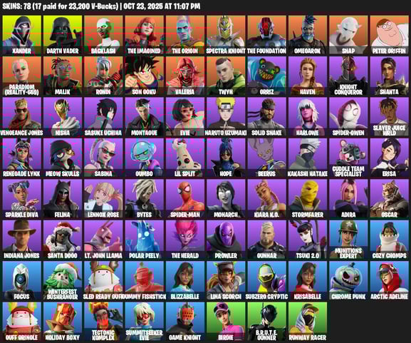 [PC/XBOX/PSN] 114 Skins | Kymera | Omegarok | The Cube Queen | Eternal Knight | Fade | Paradigm (Reality-659) | Snap | Renzo the Destroyer | Torin | The Foundation | Kado Thorne | The Imagined | Gear Specialist Maya | Raz | Ronin | Mandalorian | Malik