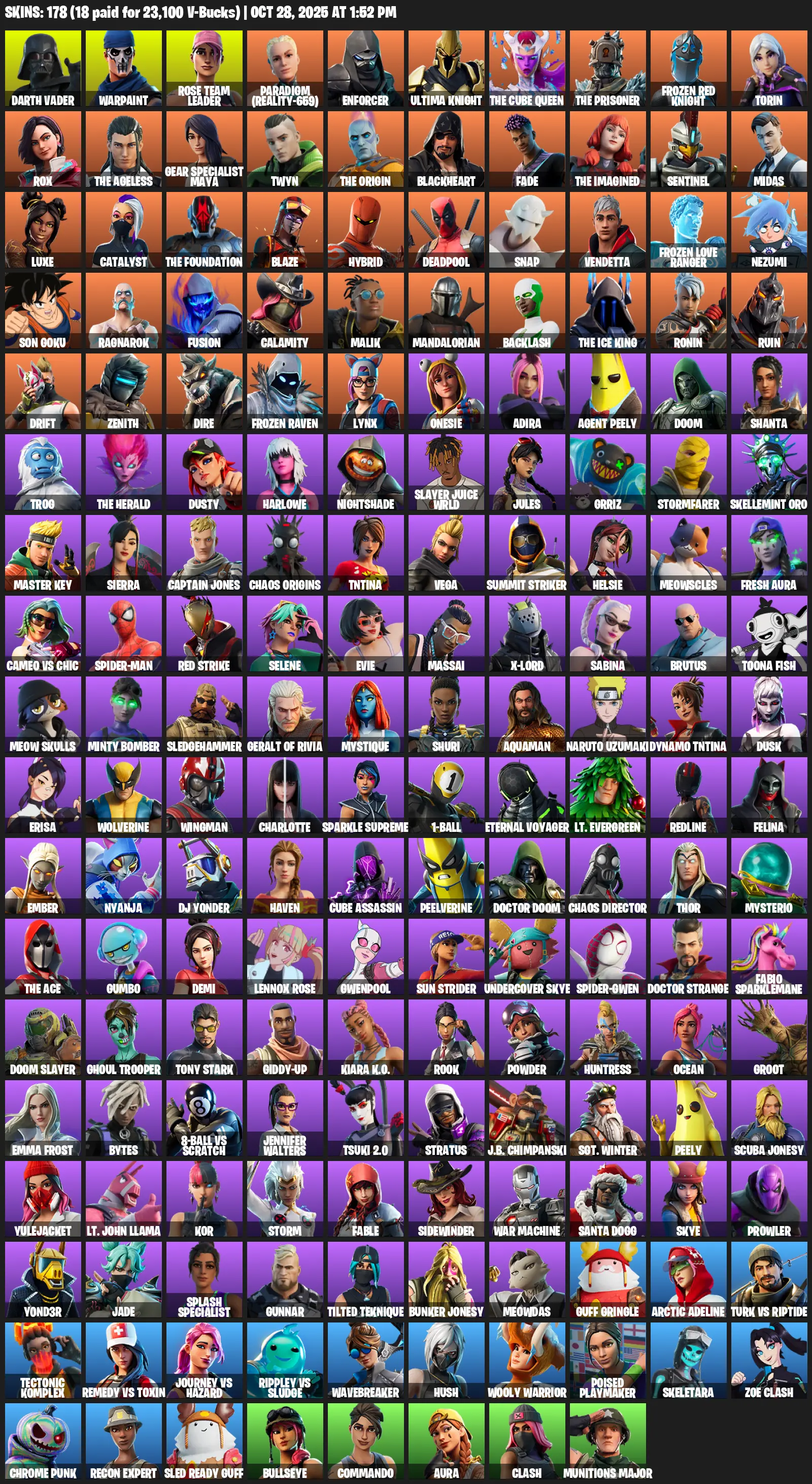 [PC/XBOX/PSN] 178 Skins | Darth Vader | Warpaint | Rose Team Leader | Paradigm (Reality-659) | Enforcer | Ultima Knight | The Cube Queen | The Prisoner | Frozen Red Knight | Torin | Rox | The Ageless | Gear Specialist Maya | Twyn | The Origin | Blackheart