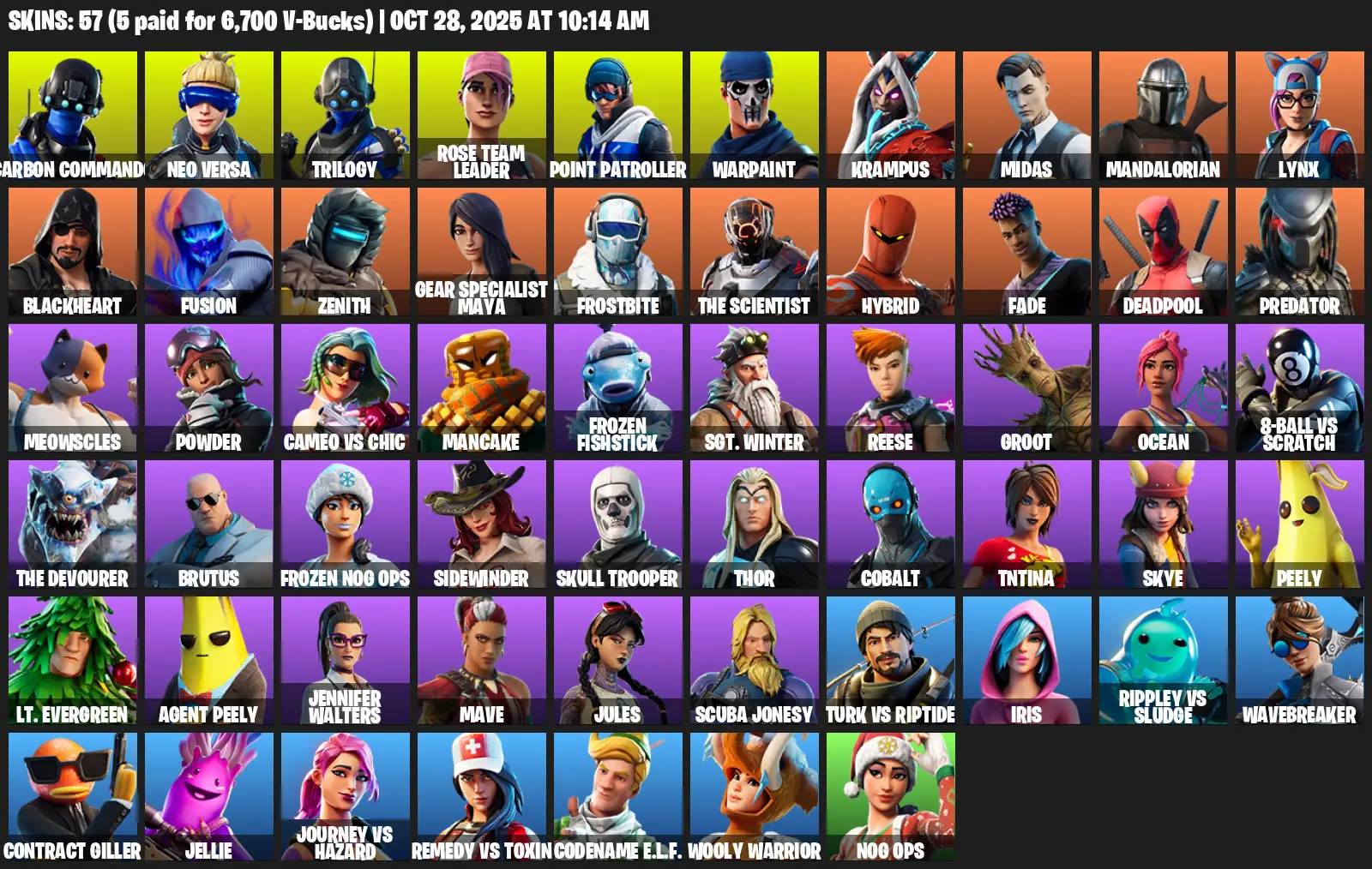 [PC/XBOX/PSN] 57 Skins | Carbon Commando | Neo Versa | Trilogy | Rose Team Leader | Point Patroller | Warpaint | Krampus | Midas | Mandalorian | Lynx | Blackheart | Fusion | Zenith | Gear Specialist Maya | Frostbite | The Scientist | Hybrid | Fade