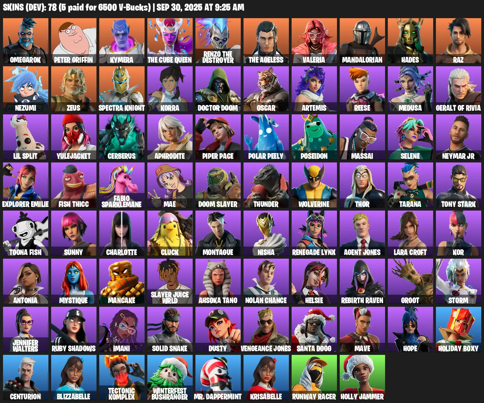 [PC/XBOX/PSN] 78 Skins | Omegarok | Peter Griffin | Kymera | The Cube Queen | Renzo the Destroyer | The Ageless | Valeria | Mandalorian | Hades | Raz | Nezumi | Zeus | Spectra Knight | Korra | Doctor Doom | Oscar | Artemis | Reese | Medusa