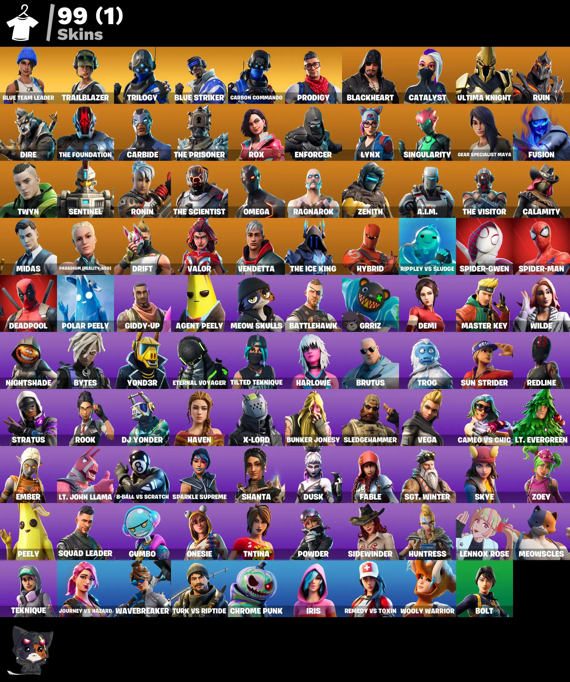 [PC/XBOX/PSN] 99 Skins 💜 Blue Team Leader 💜 Trailblazer | Point It Out | Blue Striker | Carbon Commando | Orange Justice | Blackheart | Freestylin' | 1800 VB