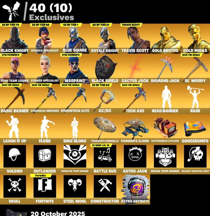 [PSN/XBOX/NINTENDO/PC] 102 skins ✨ Black Knight ✨ Travis Scott ✨ OG STW ✨ Sparkle Specialist ✨ 1000 VB ✨ EMAIL ACCESS✨