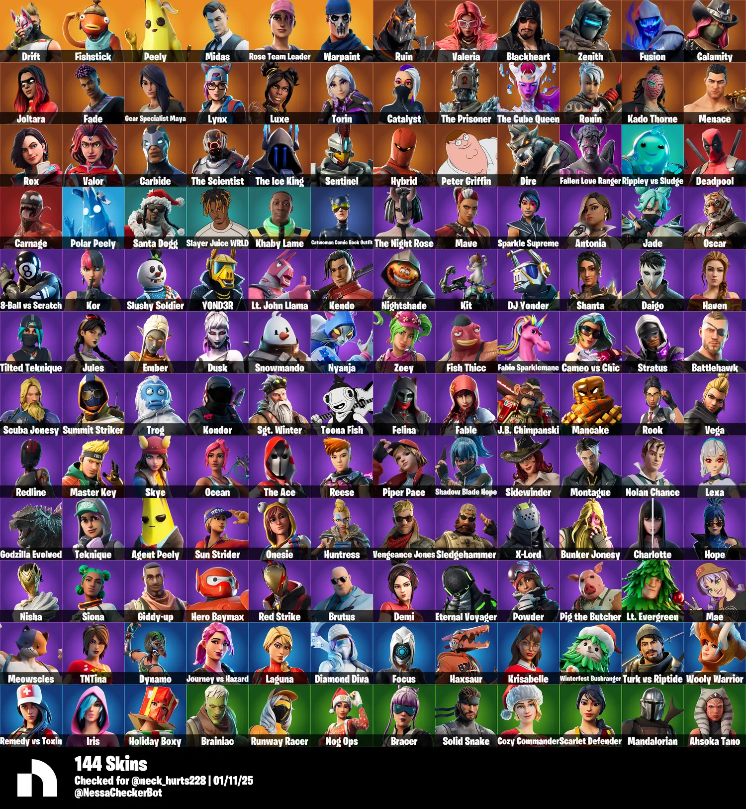 #SID5 [PC/PSN] 144 Skins | OG STW | Drift | Fishstick | Peely | Midas | Skirmish | Lil' Kev | Rust Bucket | Pursuit | Rose Glow | 400 VB