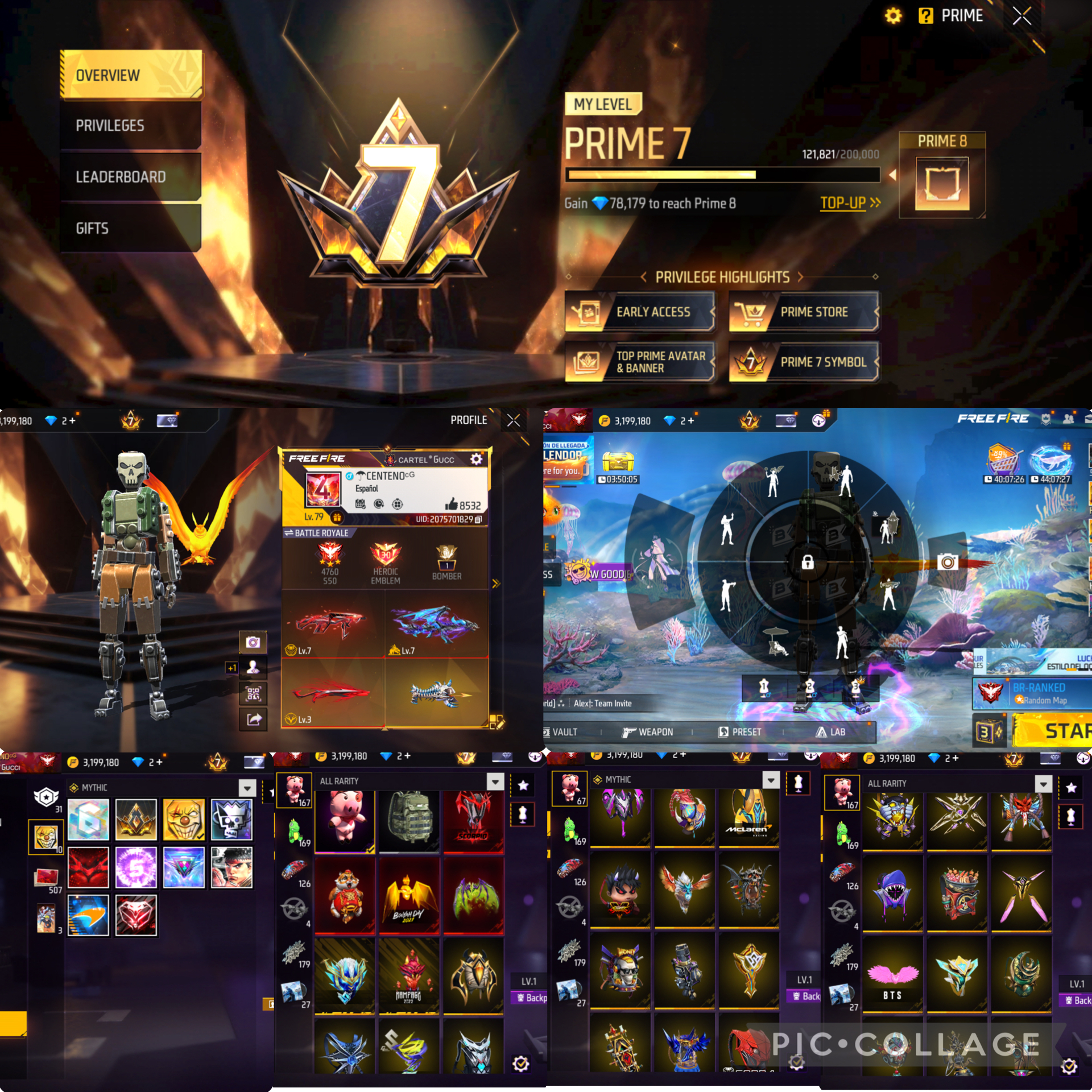 👑 PRIME 7 🔥 6 YEARS OLD 💎 14 EVO GUNS (AK47🔥LV7 MAX + MP40 COBRA⚡LV7 MAX + MULTIPLE LV5🔥) 🧨 685 GUN SKINS 💥 140 MYTHIC 🎭 101 EMOTES 👗 332 BUNDLES 🏆 FULL COLLECTION