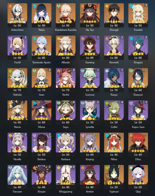 AR56 / EU {19X 5 STAR LEGENDS} Arlecchino / Yelan / Kazuha / Hu Tao / Zhongli / Ayato / {2-WEAPON}- FULL ACCESS Zka035