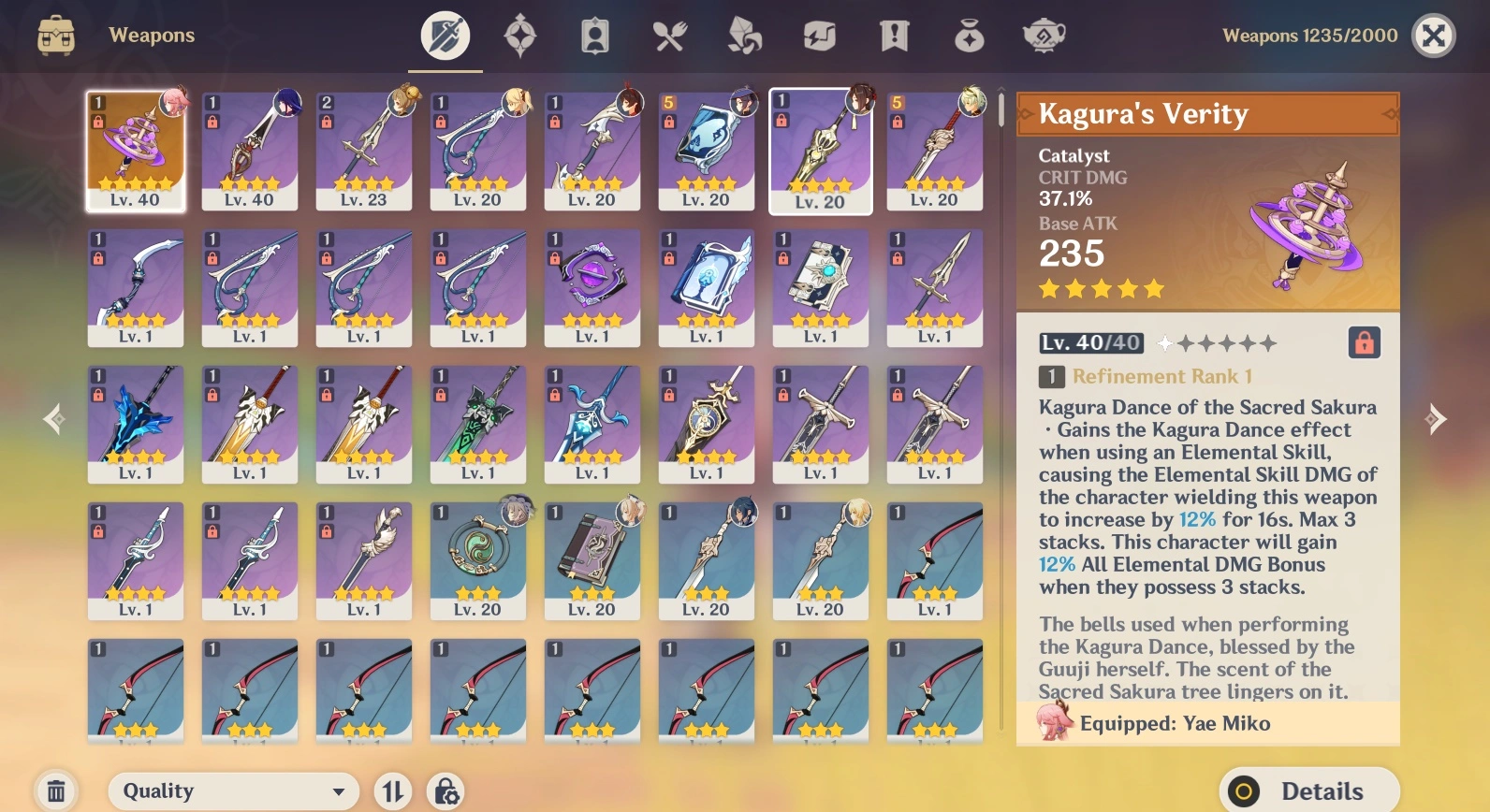 EU AR48 | 5 stars*7 Chiori | Dehya | Jean(C1) | Mona | Raiden Shogun | Yae Miko(C2) | Kagura's Verity | lots of 4* characters and weapons