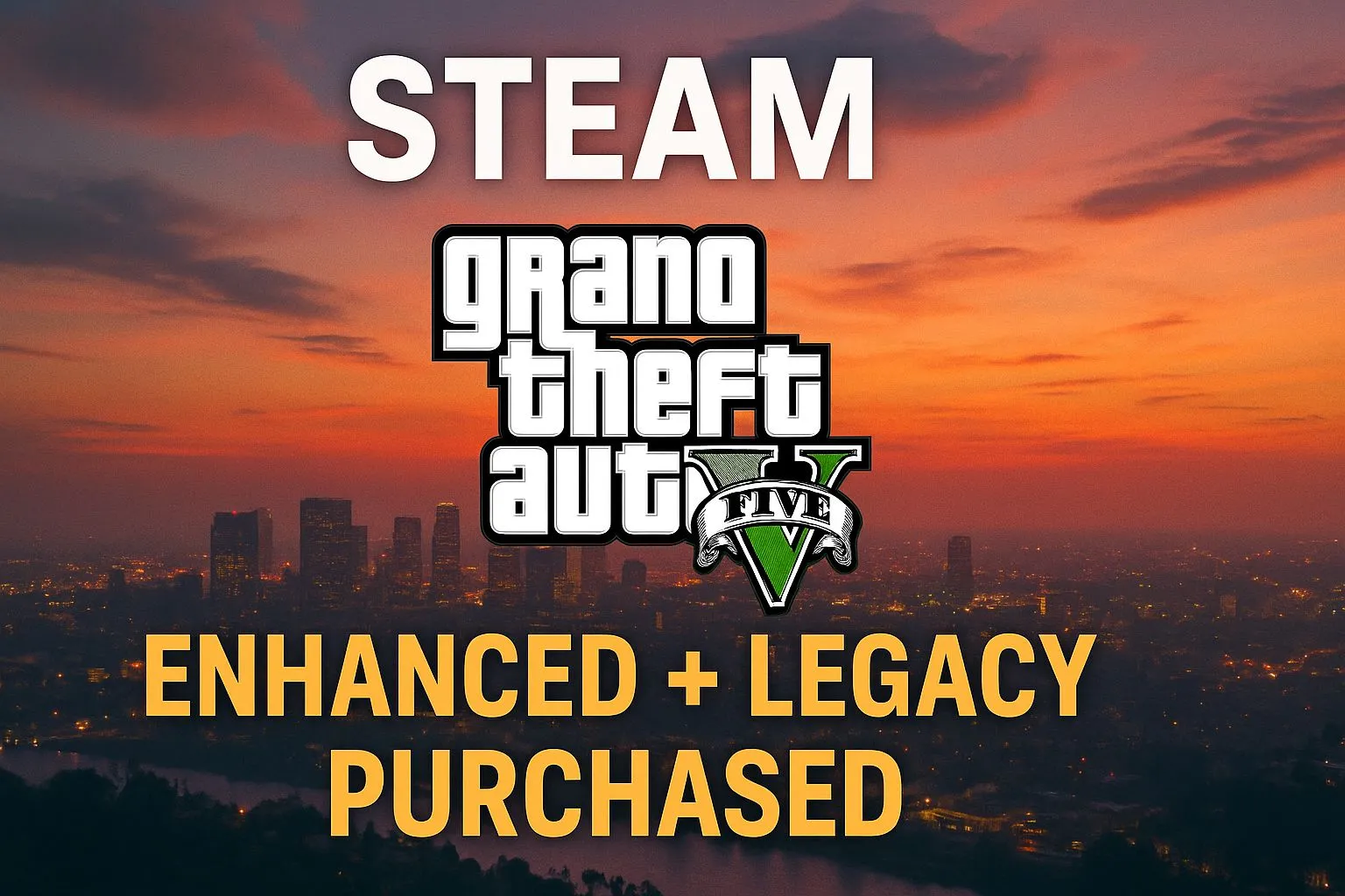 💠 GTA 5 Legacy + Enhanced (Steam License) 🧾 Changeable Details 🛠️ Brand-New Play Log 💎 Both Versions Bought 🚚 Instant Drop #R2J4K
