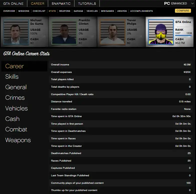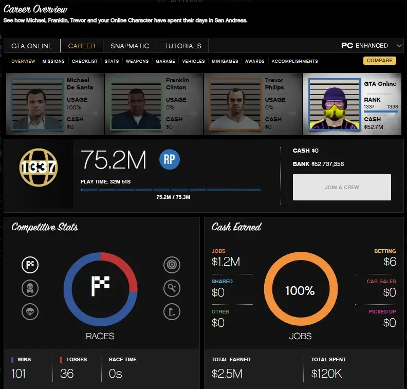 π¦ [STEAM PC βΈ± ENHANCED] π·π | πͺ 1.991 Million Casino Chips | π‘οΈ RP 1337 | ποΈ 51 Million in Pure Cash | π§΅ 20 Mod Outfits + Cars | π°οΈ MAXED STATS & FAST RUN | πΊ GTA Modded Account | β‘ INSTANT DELIVERY |