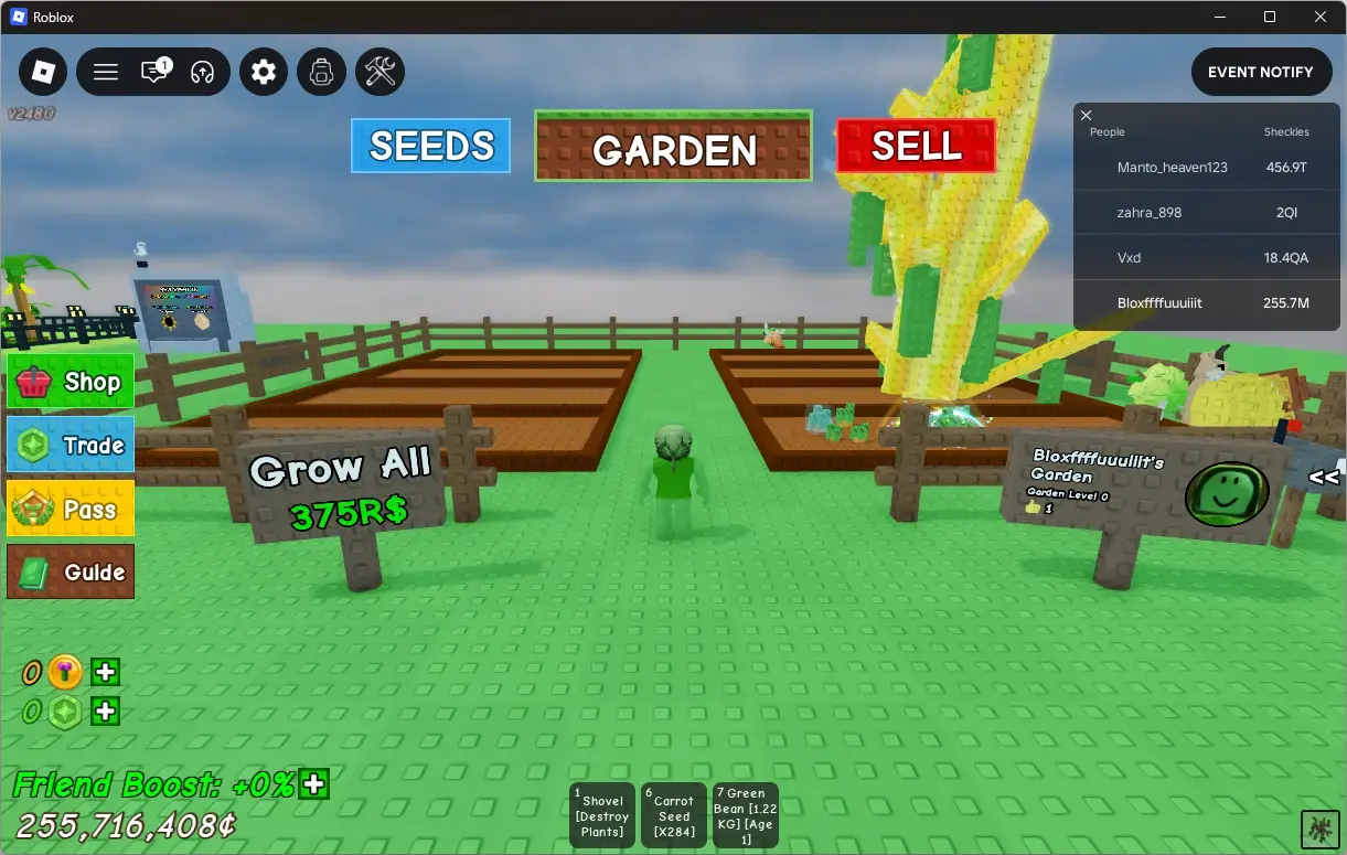 ❤️ Grow a Garden ❤️ 255.7M sheckles ❤️