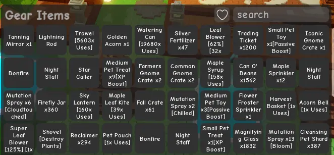 Grow a Garden ⸱ 457 Cosmetics ⸱ 3 Hot Spiring ⸱ 7 Bone Blossom ⸱ Fossilight Seed ⸱ 92 Pets