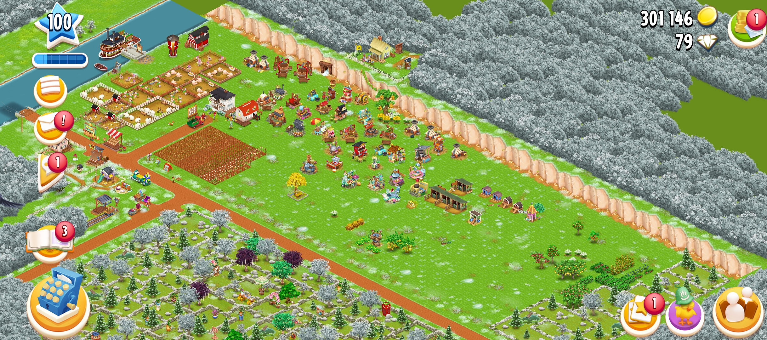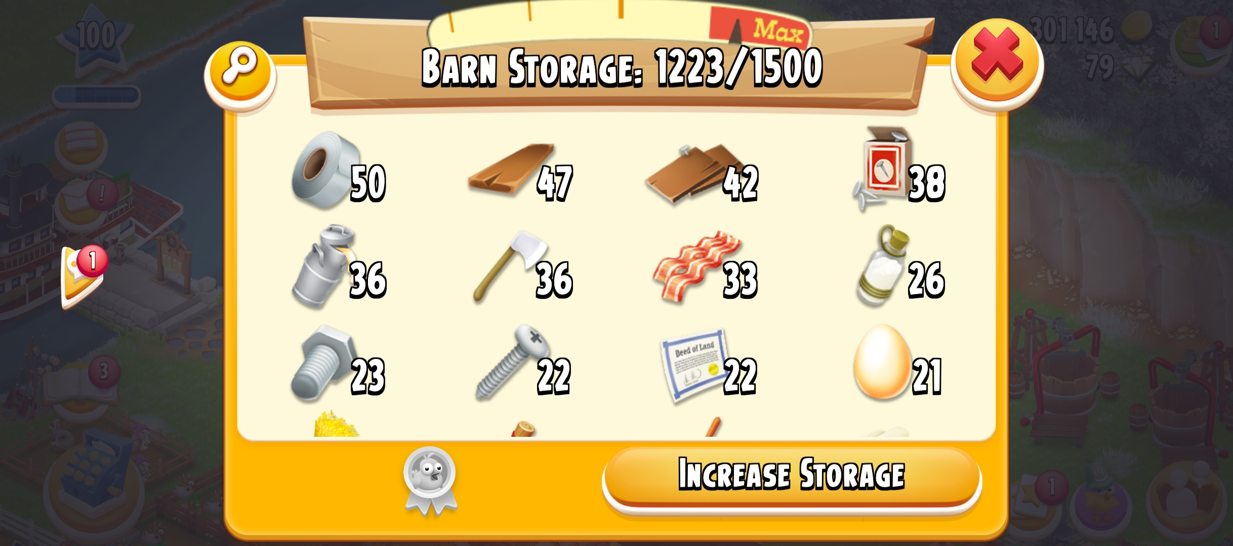 100 Level | Barn Storage 1500 | Silo Storage 1500 | 300k Coin | 79 Gems | Android & Ios