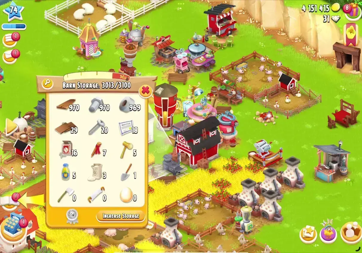 3100 BARN | 74 LVL | 2150 SILO | 31 DIAMONDS | 4151415 COINS | WHEAT | PLANK | BOLT | DUCT TAPE | FULL ACCESS | IOS/ANDROID (SCREENSHOTS INSIDE)