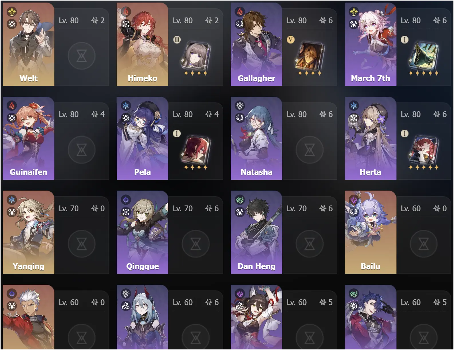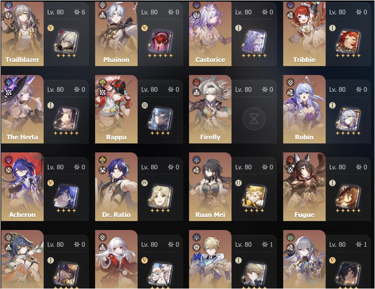 Blade Yunli Fugue Acheron Robin Firefly Rappa The Herta Tribbie Castorice Phainon AR70
