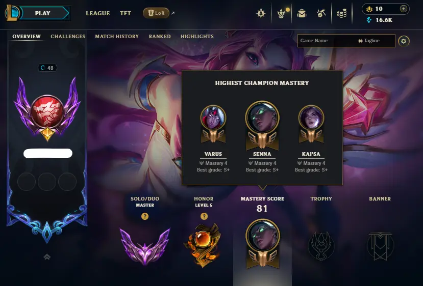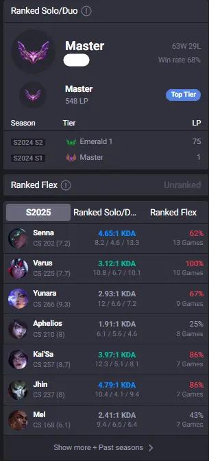 ADC 🔥High Master 500+LP 68%WR Handleveled💎16K BE 15Skins✅Lifetime Ownership Guarantee ⸱ Never Taken Back