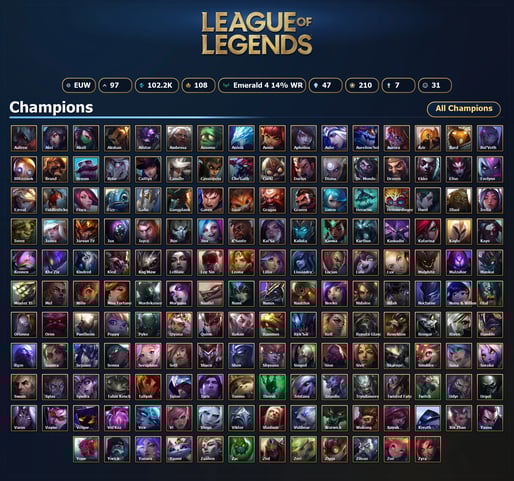 ![【TW】 ⸱ 👑 LEVEL 355 ⸱ 🏆 S4 84LP ( S4 LAST SEASON ⸱ S2 FLEX ) ⸱ ✨ 286 SKINS ( 4 URS SKINS ) 💳 [ 315154 BE , 30 RP , 57 MESS ] ⸱ ⭐ HONOR LVL 1 ⸱ 172 CHAMP ⚔️](https://cdn.gameboost.com/games/league-of-legends/tiers/sm/Silver.webp)