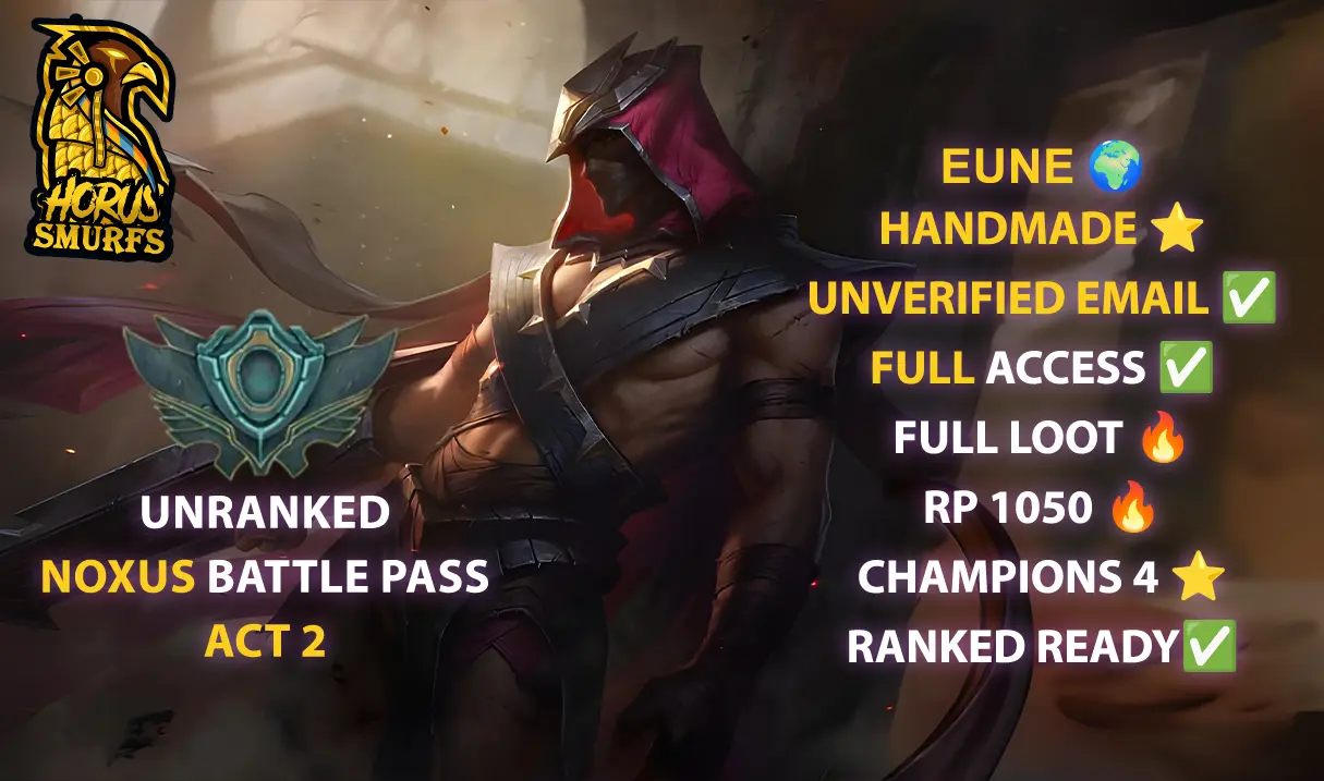 🌎EUNE🏆8 Wins🔥Ranked Ready✅HandMade⭐️1050RP⭐untouchable Loot 4🔥Skins in loot🔥Noxus:Act 2 Pass❄️+29K BLue ✅Full Recovery Info✅️Unverified Email🚀instant delivery