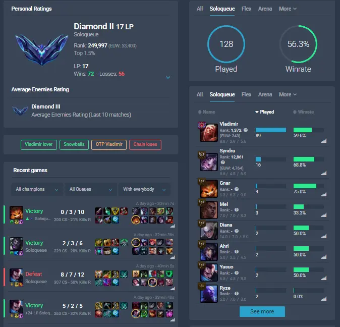 ✅EUW Diamond IV(MID/TOP)30 LP✅49 CHAMPIONS✅9 SKINS✅HIGH MMR +24 /-16 LP GAIN %56 WR✅ FULL SAFE ACCOUNT✅