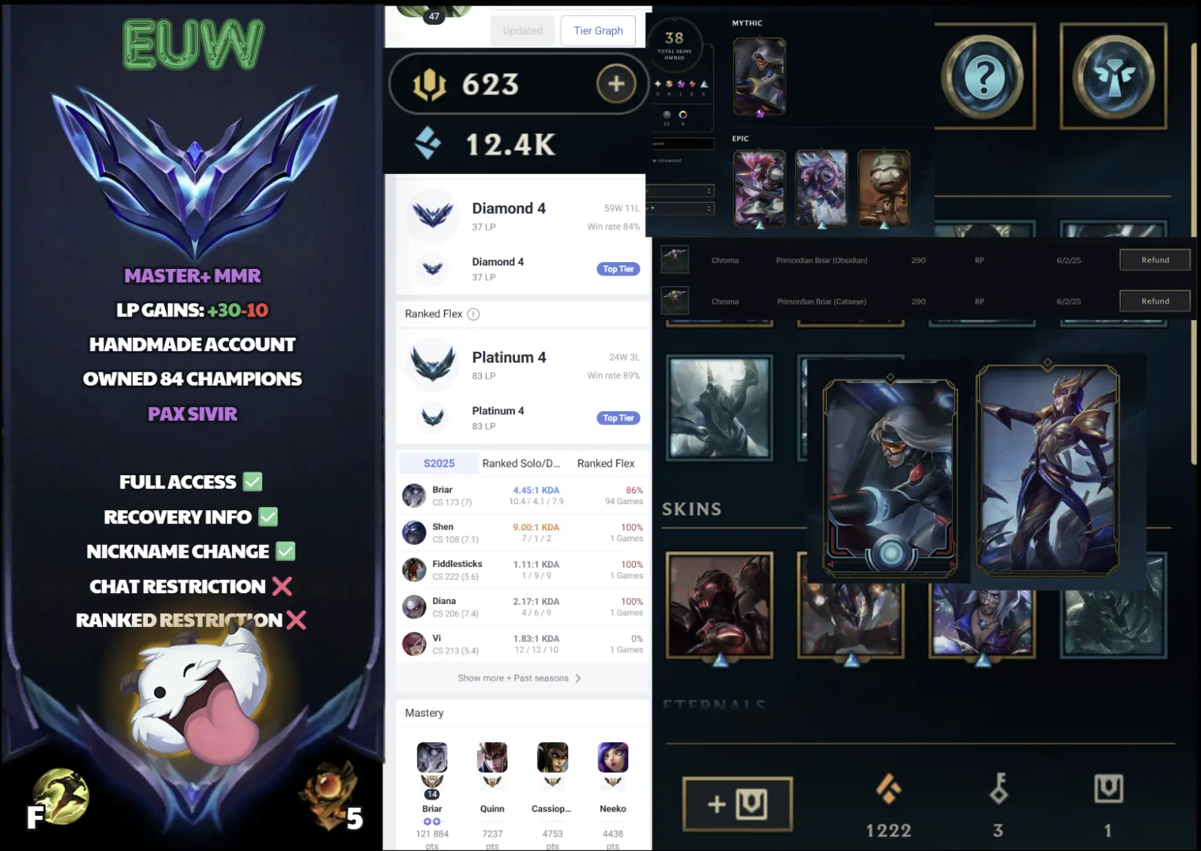 ๐ EUW ๐ Handlevel โก Diamond IV (37 LP)โจ WR:85% ๐ฅ PAX Sivir +30LP Gains & More! โพ๏ธ Lifetime Ownership ๐ง Full Email Access โ