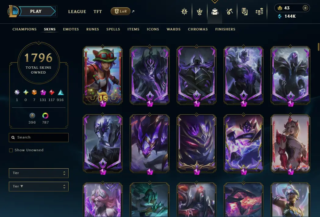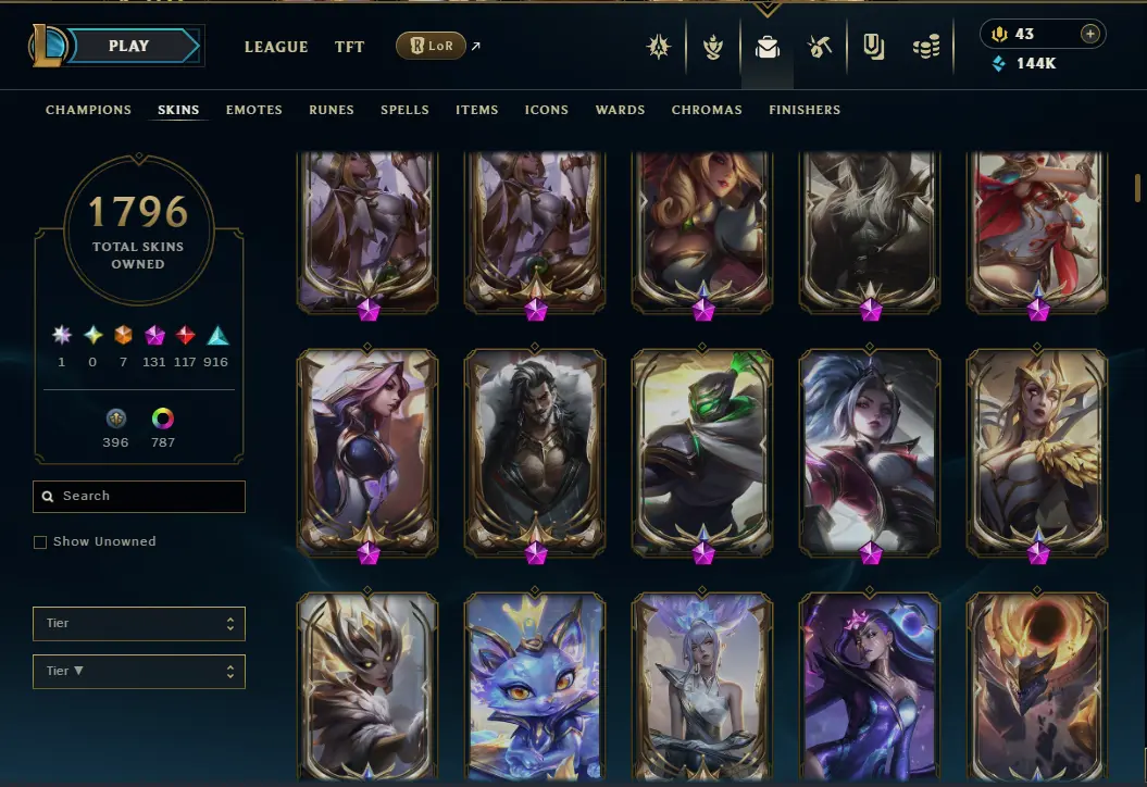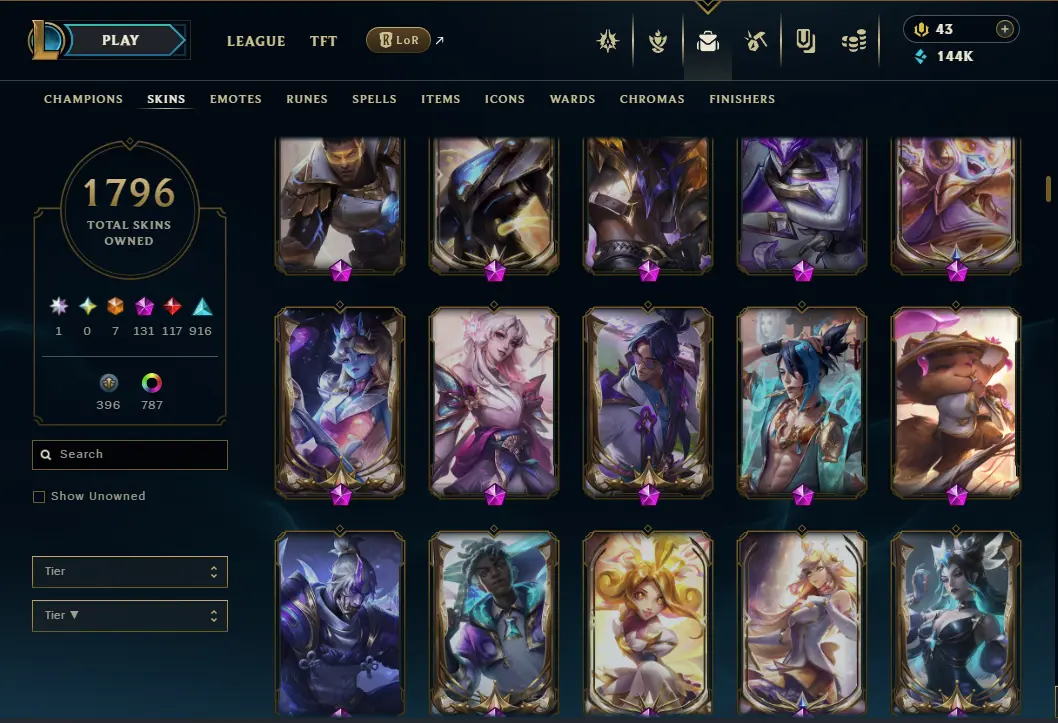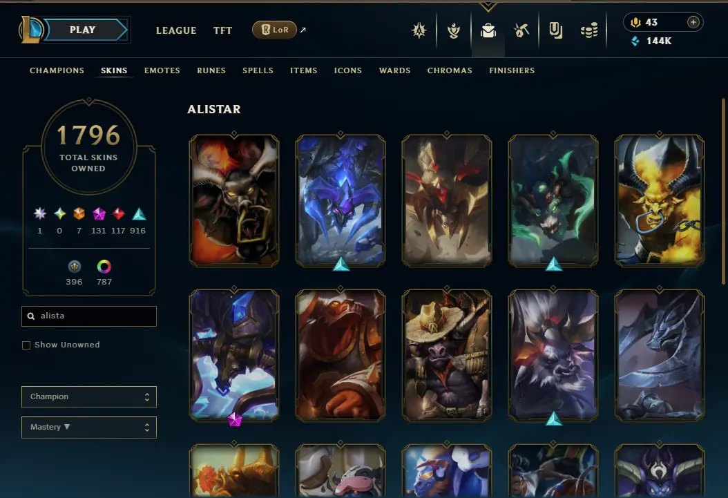 [EUW] Immortalized Legend Ahri + Dark Cosmic Erasure + All Rare Skins Like: PAX, Black Alistar + 788 Chromas + 1053 Icons +80% Tft Loot+Full Recovery Info