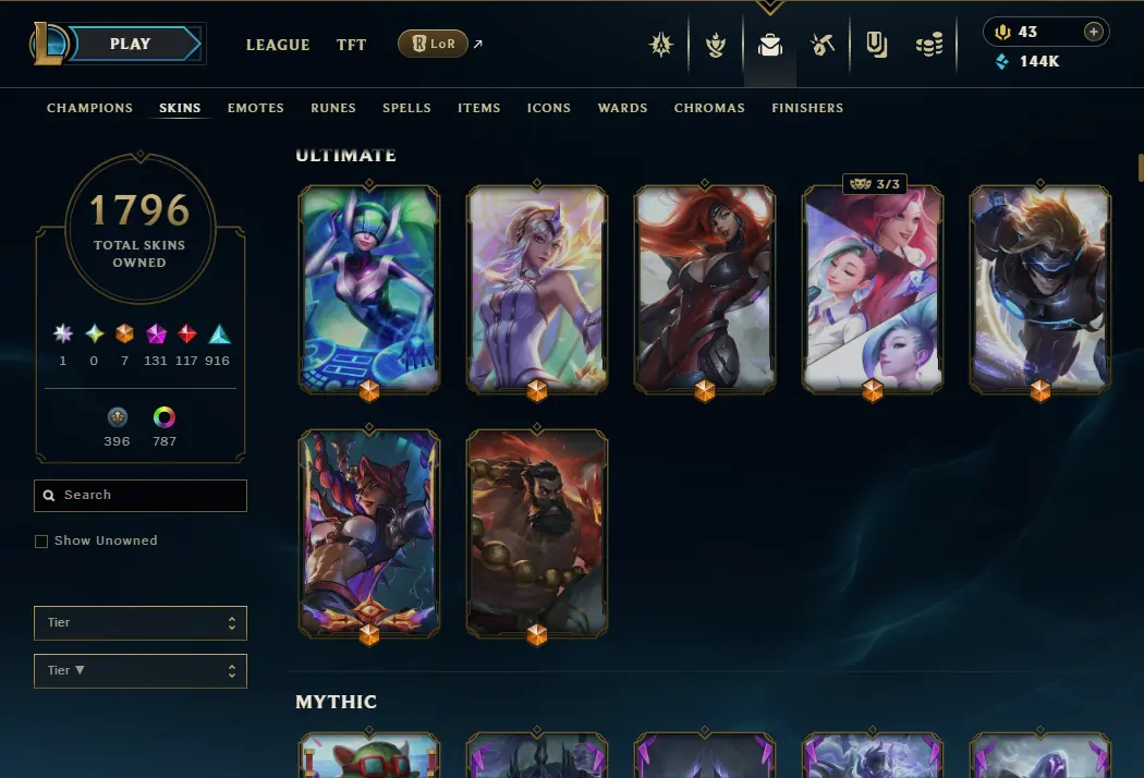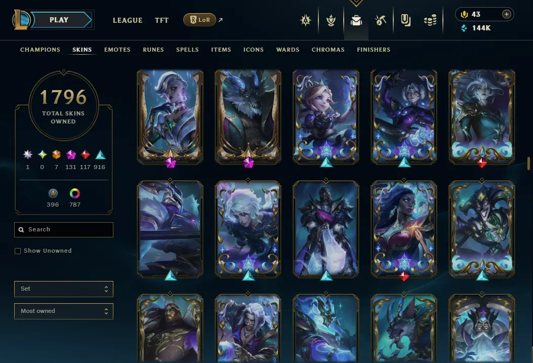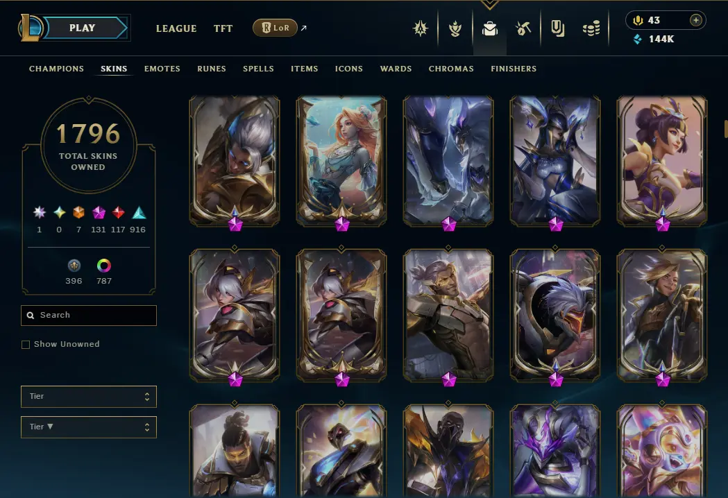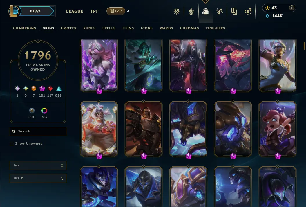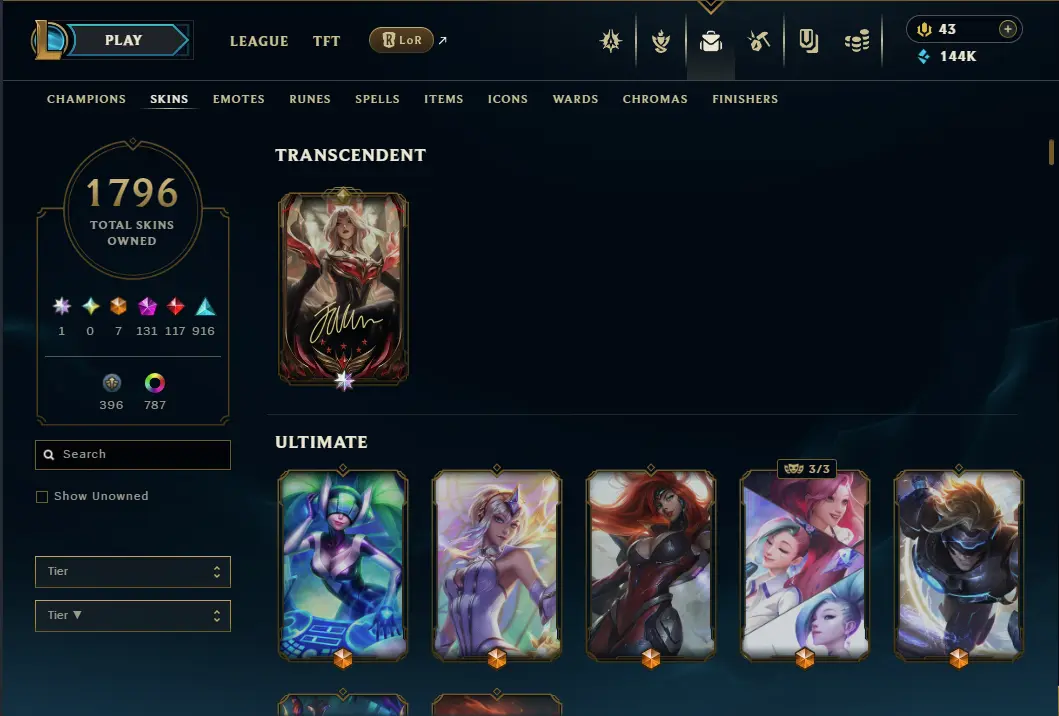 [EUW] Immortalized Legend Ahri + Dark Cosmic Erasure + All Rare Skins Like: PAX, Black Alistar + 788 Chromas + 1053 Icons +80% Tft Loot+Full Recovery Info