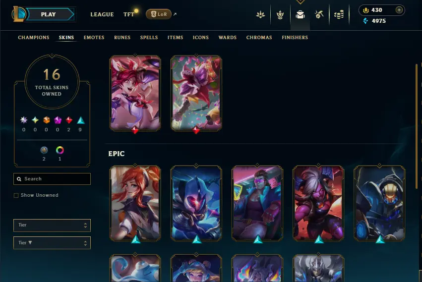 🎮 [EUW] • LVL 64 • Unranked ❌ • 16 Skins 🎭 • 4.9K BE / 430 RP 💰 • Honor 3 🏅 • 64 Champs 🧠