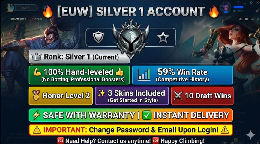🎊EUW🎊HAND+Ranked Ready👑High KDA+MMR💎10 Draft Played