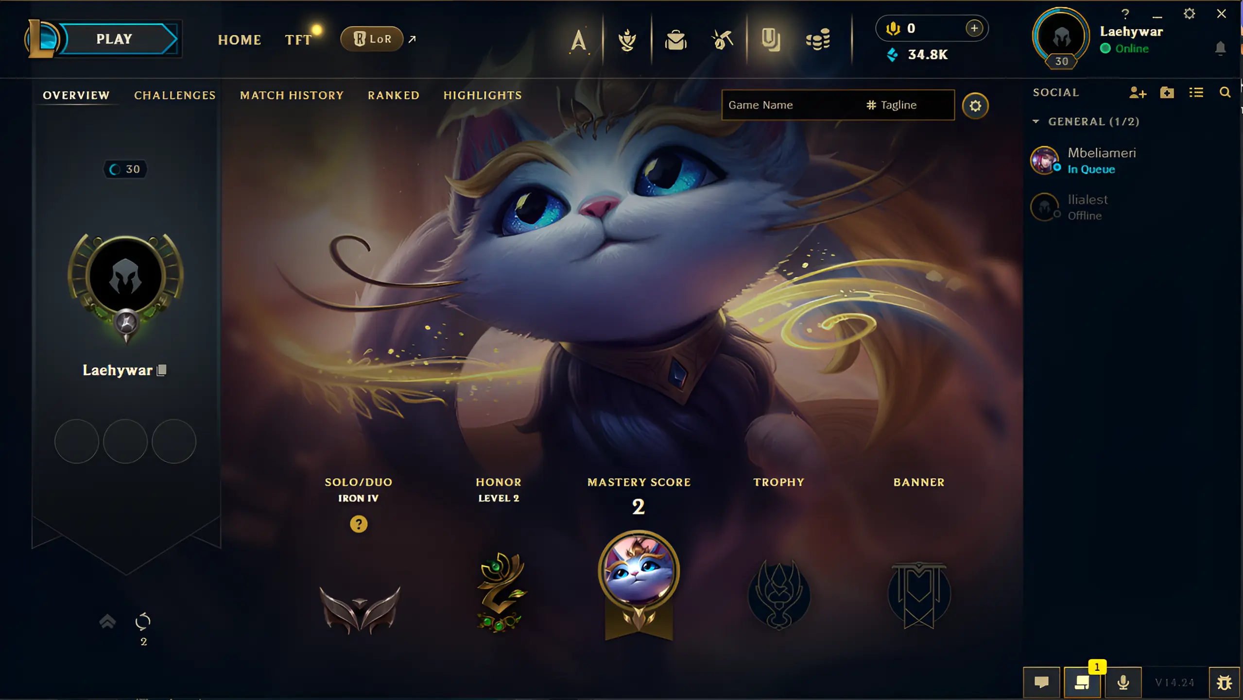 Iron IV ๐ชฉ EUW ๐ฏ Level 30 ๐งฉ 20 Champs ๐งฑ 40K BE ๐ฌ No Email Bound ๐งจ Instant Drop ๐ญ Total Lock-In #S5UW09