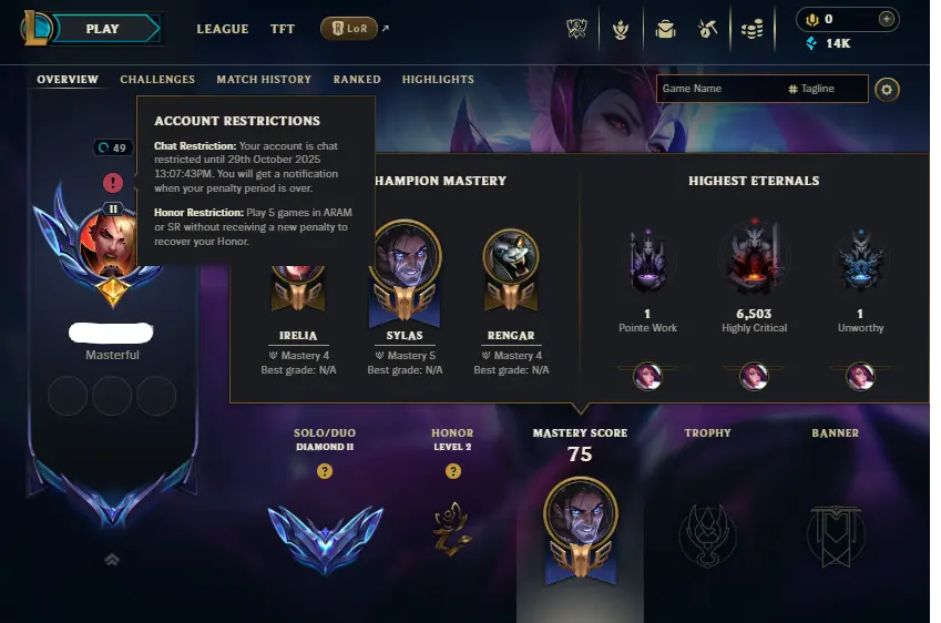 Master Peak!🔥LVL49 Diamond 2 17LP💎14K BE + LOOT✅Lifetime Ownership Guarantee ⸱ Never Taken Back