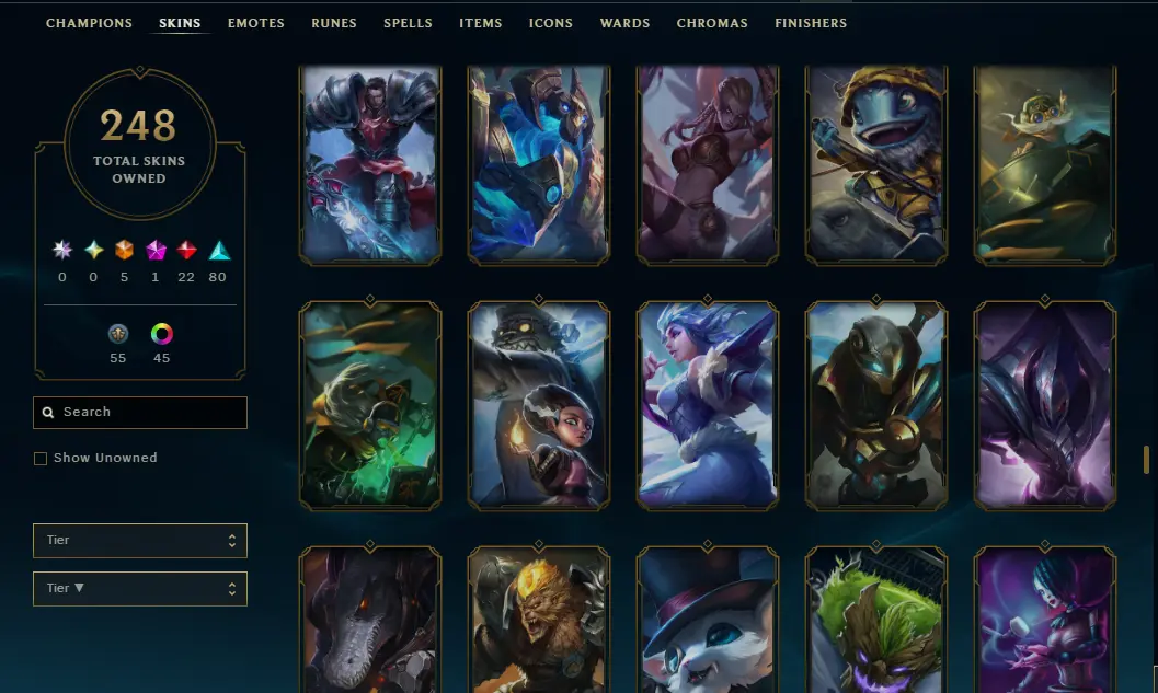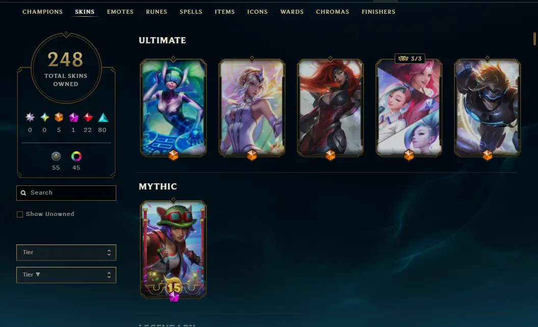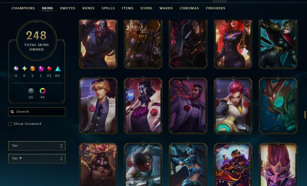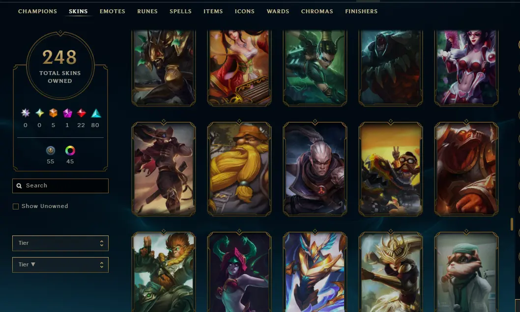"[NA] ๐บ๐ธ โธฑ Lvl 168 ๐ฎ | ๐ฅ๐ฅ Last Season | 248 Skins ๐จ | 27,364 BE ๐ฐ, 174 RP ๐ | Honor Lvl 3 ๐ | Full Champs โ
