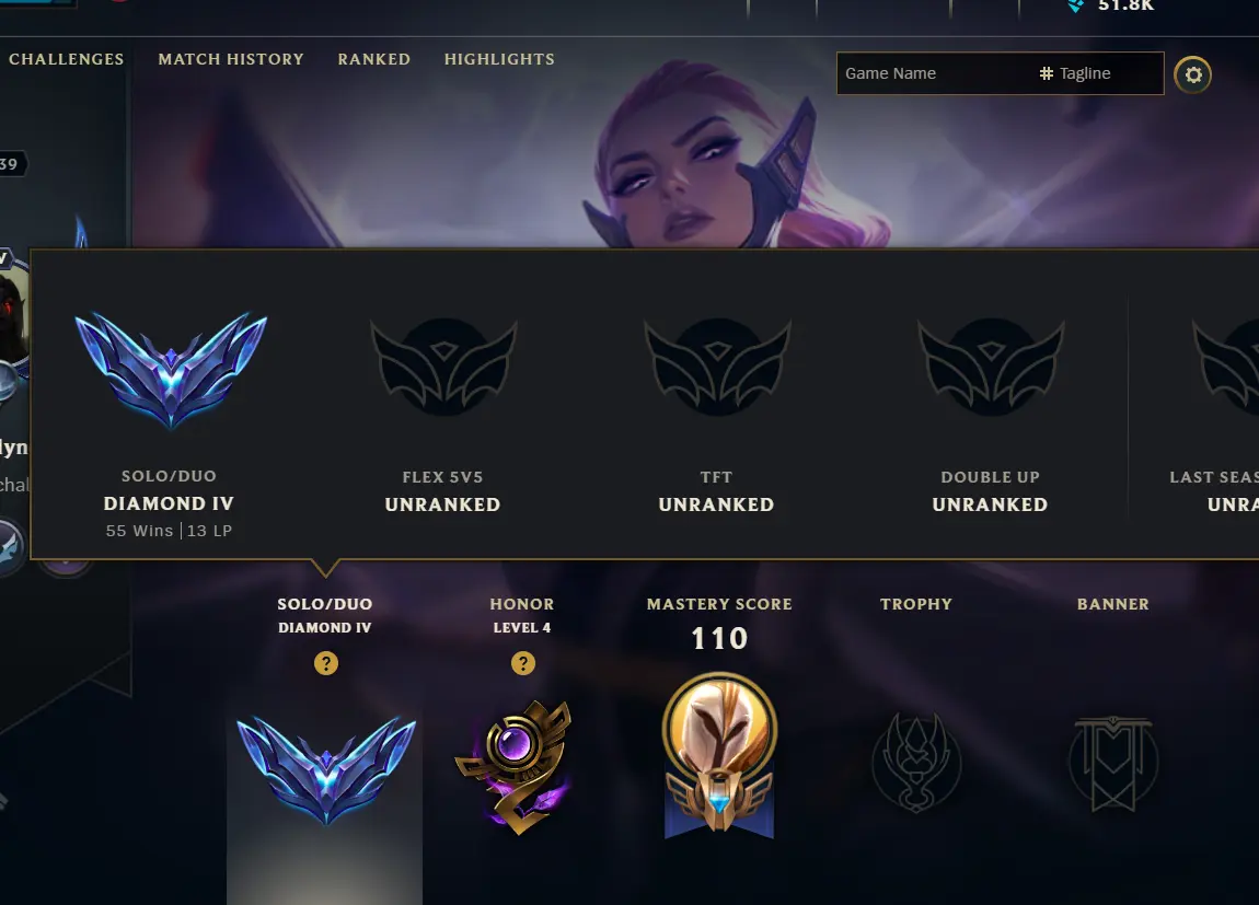 [ 🔥NA S15 SPLIT 3 ] DIAMOND 4 [13LP] ✅️ HANDLEVELED✅️65%WR✅️(55W30L) ✅️TOP/MID Main ✅️ Flash: F✅️BE: 51,000✅️ Honor 4✅️ CHANGEABLE RIOT ID