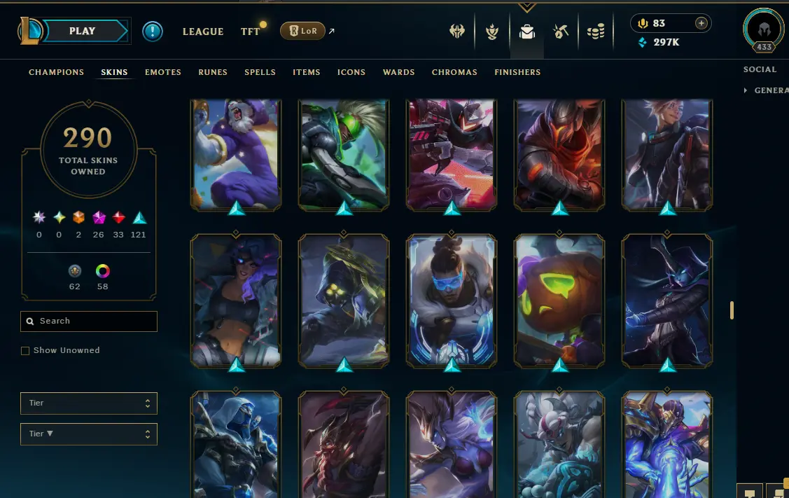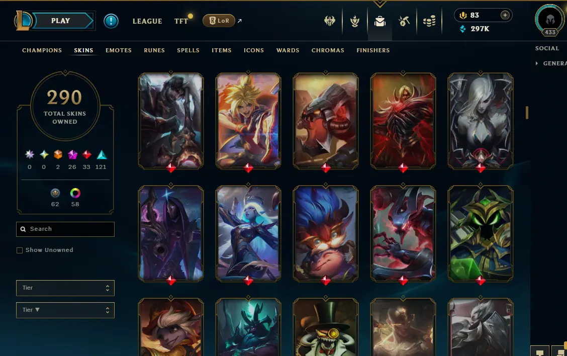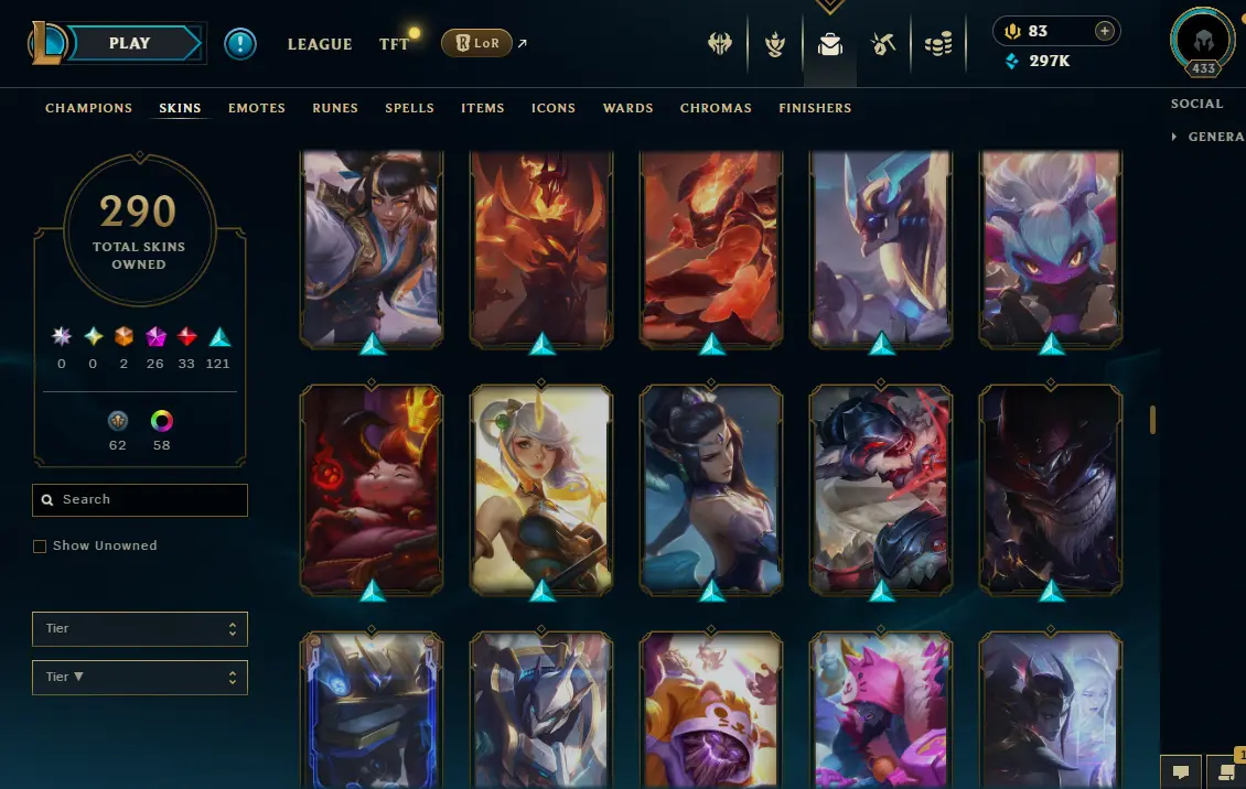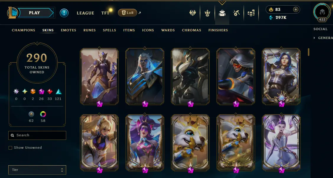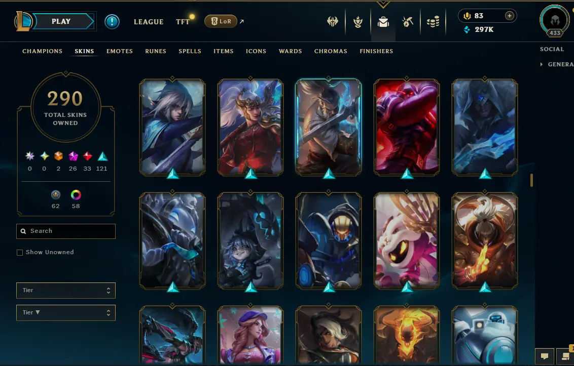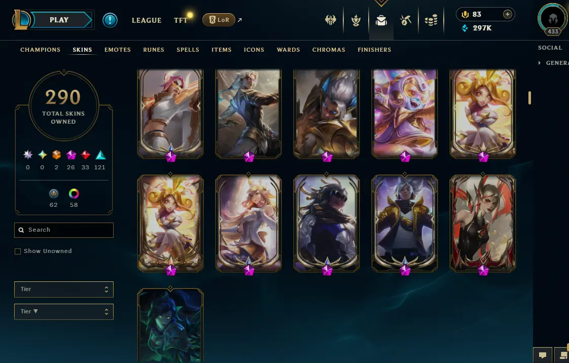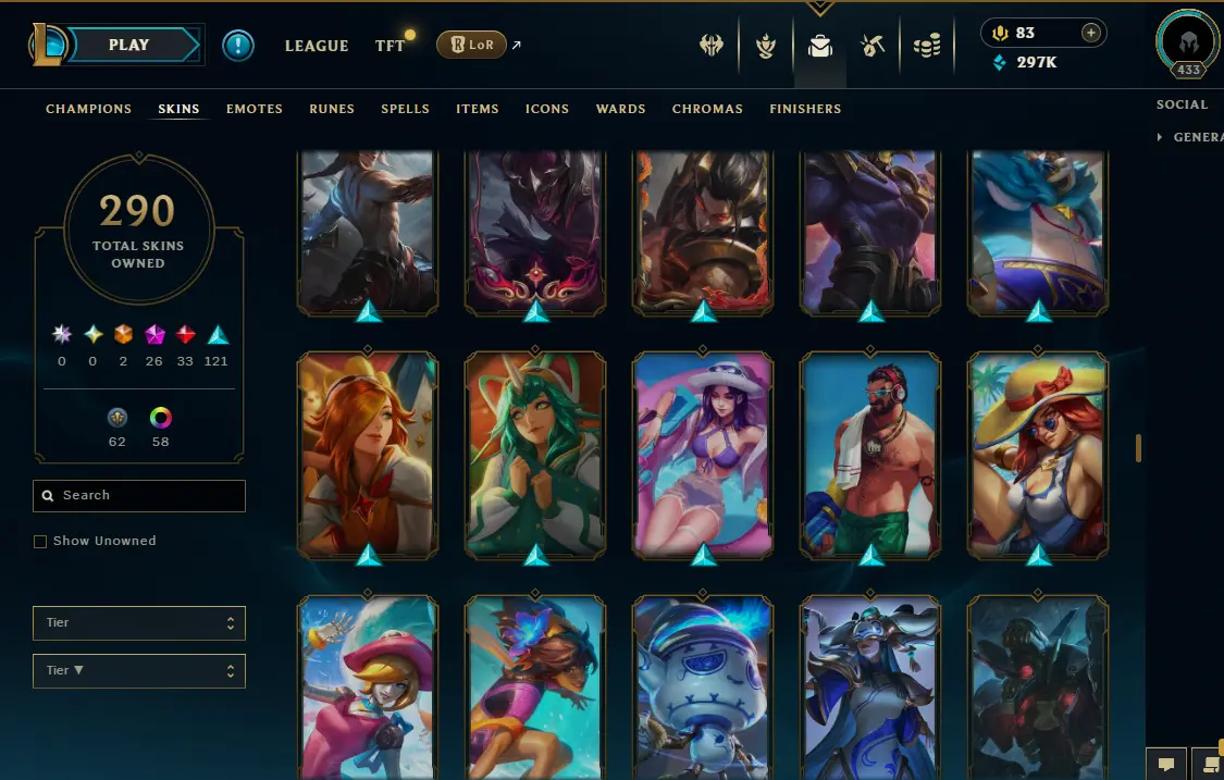 【NA】Level 433 🌊 179 Champ/ 291 Skins 🌊 Full Access 📧 🔥High Quality Account ⚡Instant Delivery️⚡