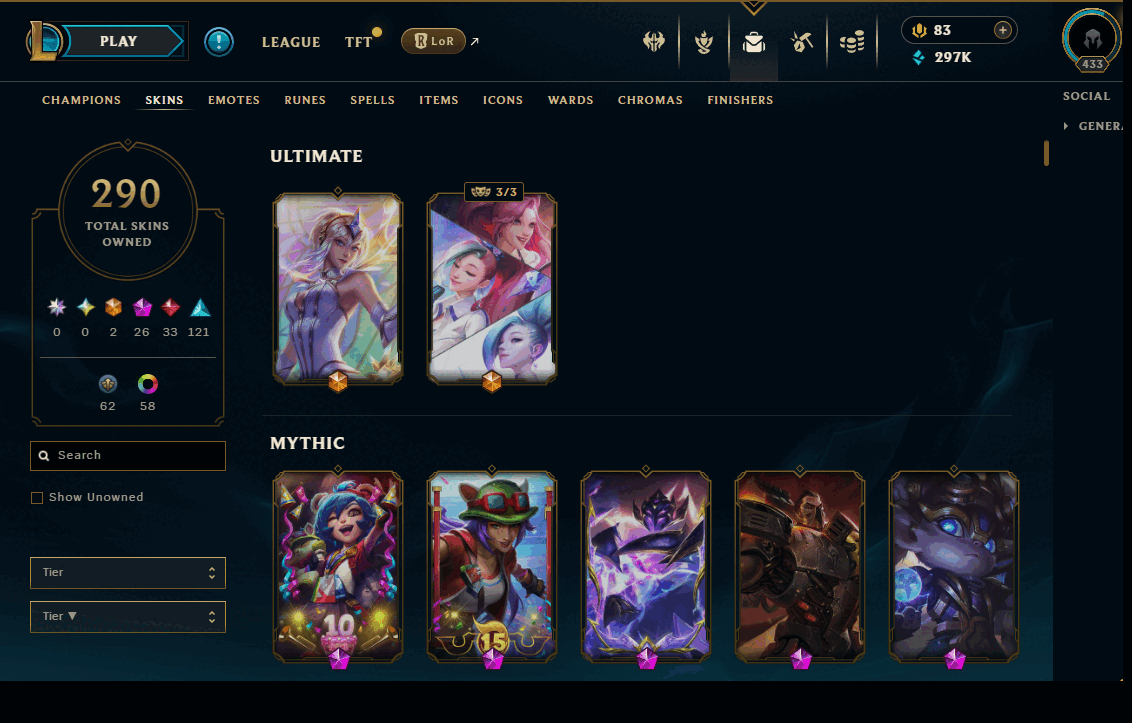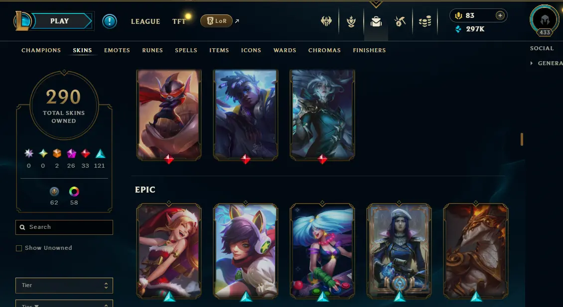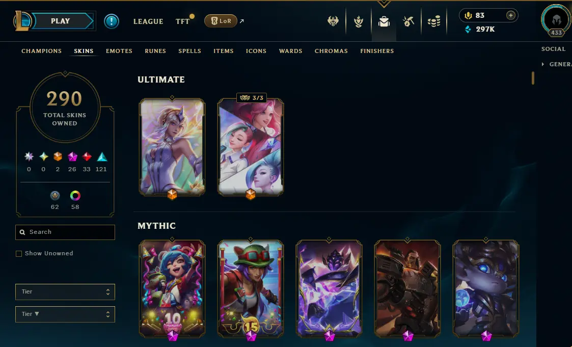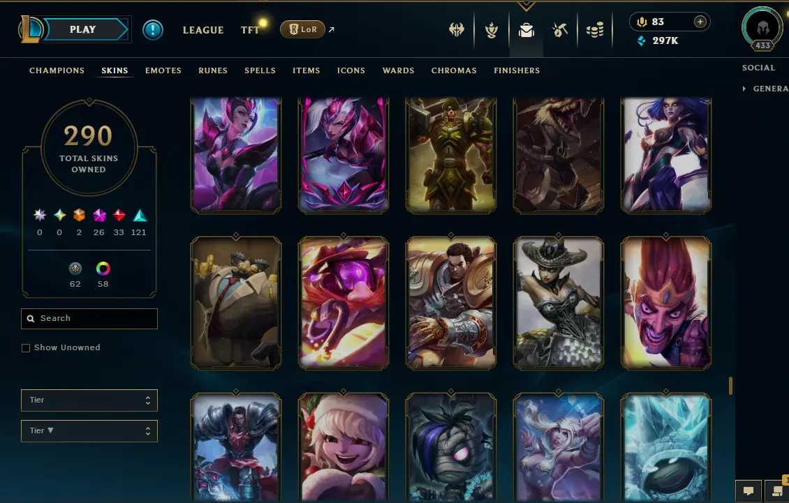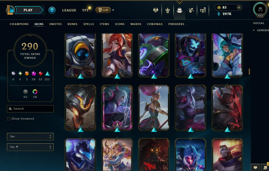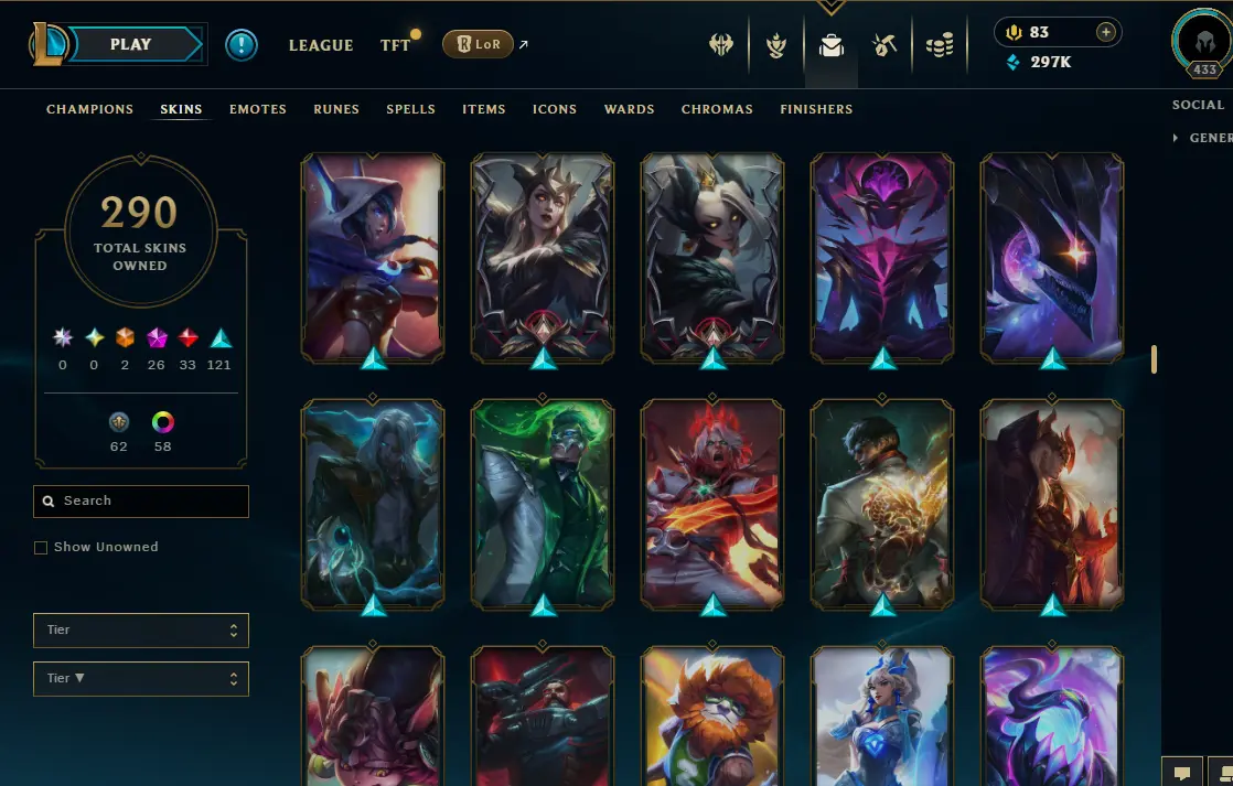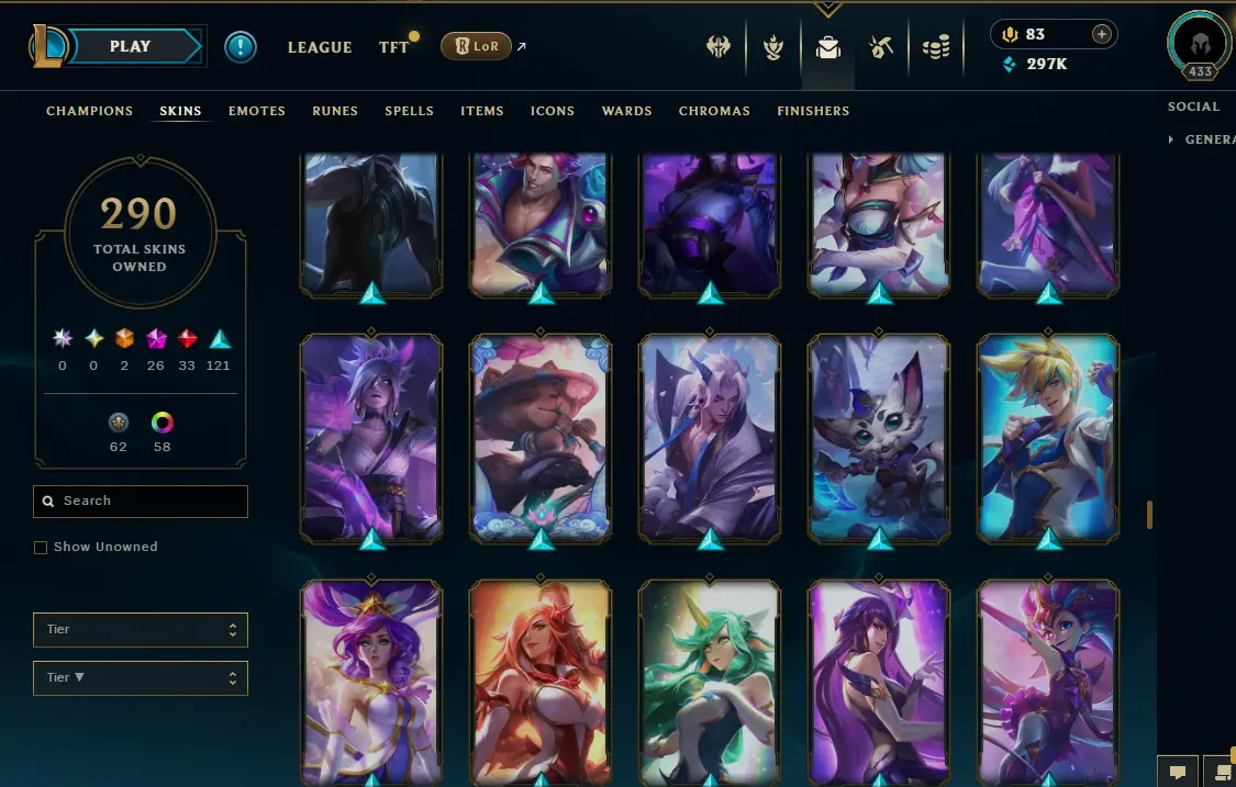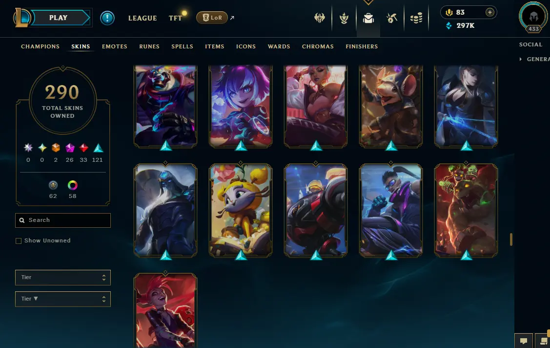 【NA】Level 433 🌊 179 Champ/ 291 Skins 🌊 Full Access 📧 🔥High Quality Account ⚡Instant Delivery️⚡