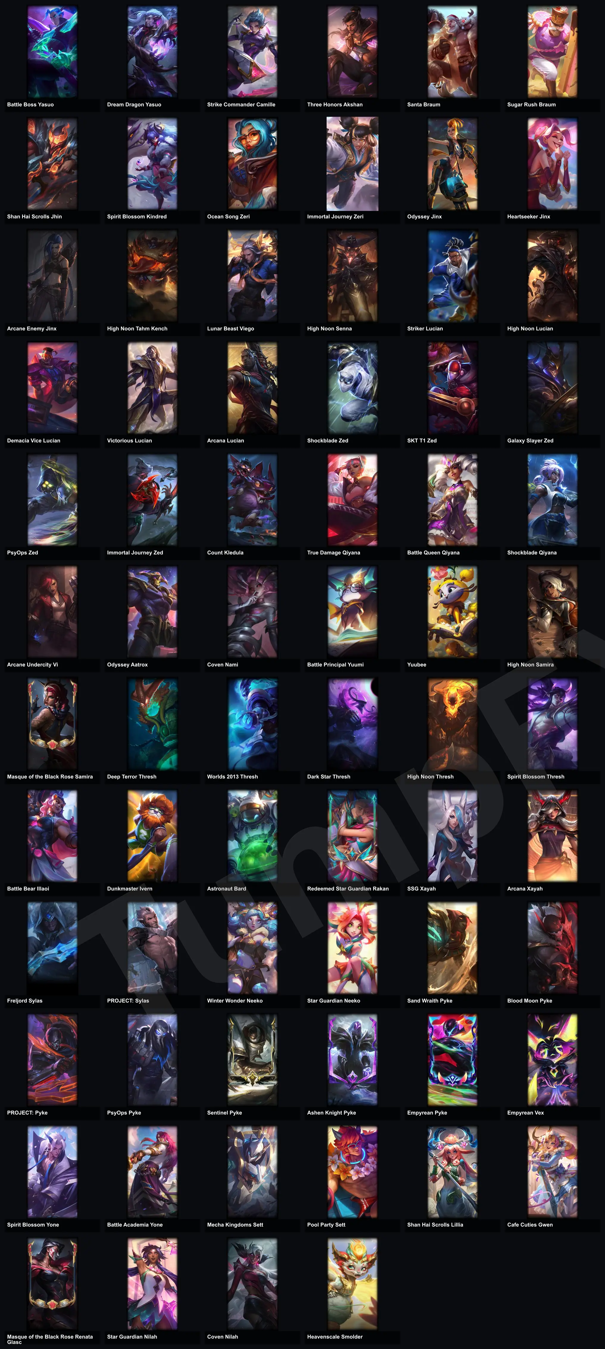 👑TR 🎉 Grandmaster 1⭐️ Prestige Coven Akali 🧿 Ashen Knight Pyke 🧿 Dream Dragon Yasuo 🎗️ Galaxy Slayer Zed ❄️ 274 SKINS ⭐ 171 CHAMPIONS ✨ Full Access ⌛ Fast Delivery 📧 Mail Changeable 📷 Check Photos