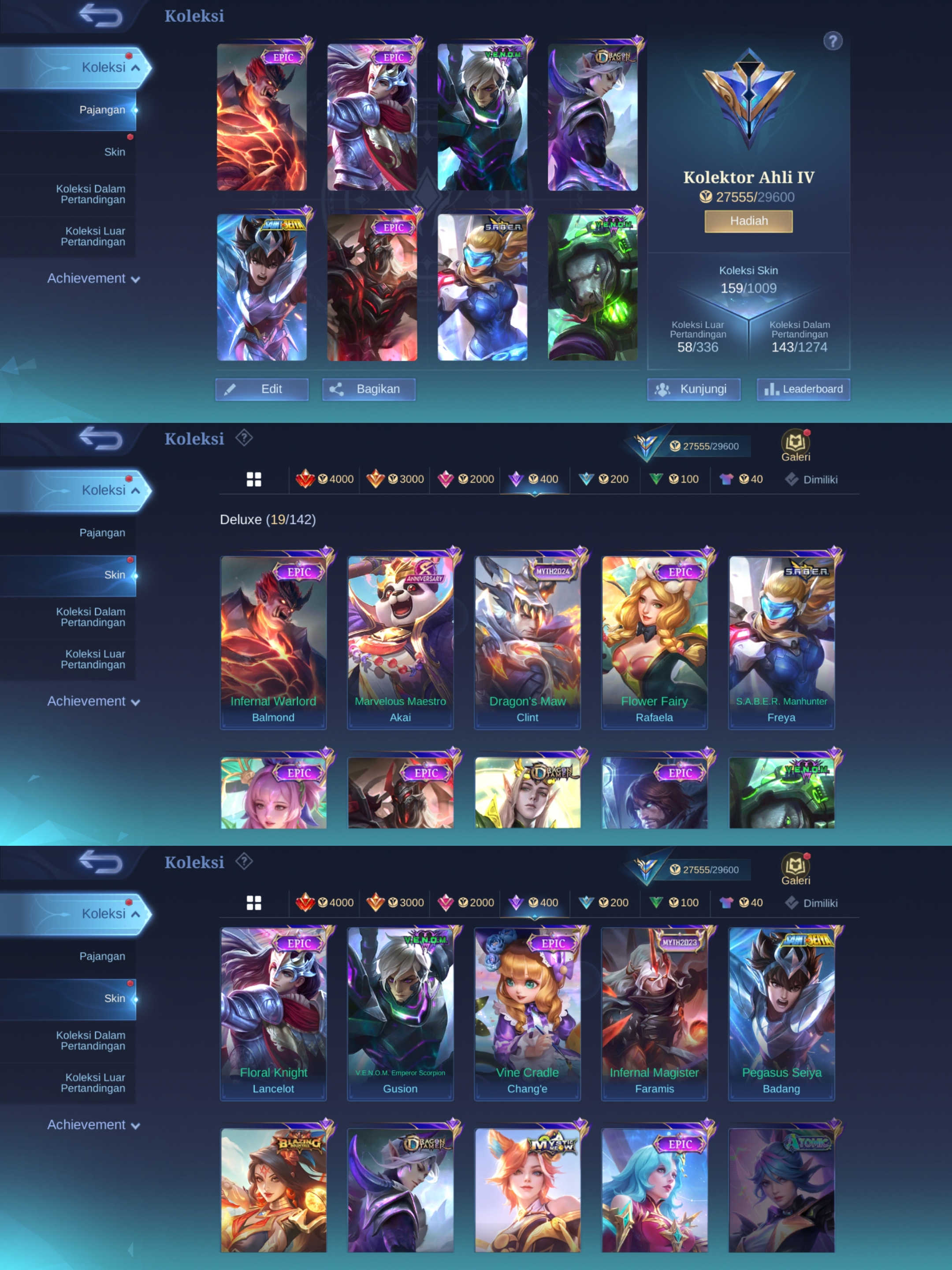 BEST MEGA DEAL✨HERO 103✨SKIN 159✨EMBLEM MAX✨SAINT SEIYA GADANG✨EPIC 8✨MYTH 3✨EPIC 9✨BLAZING 1✨MYTH 2✨AS LIMIT POPOL ✨ INSTAN DELIVERY