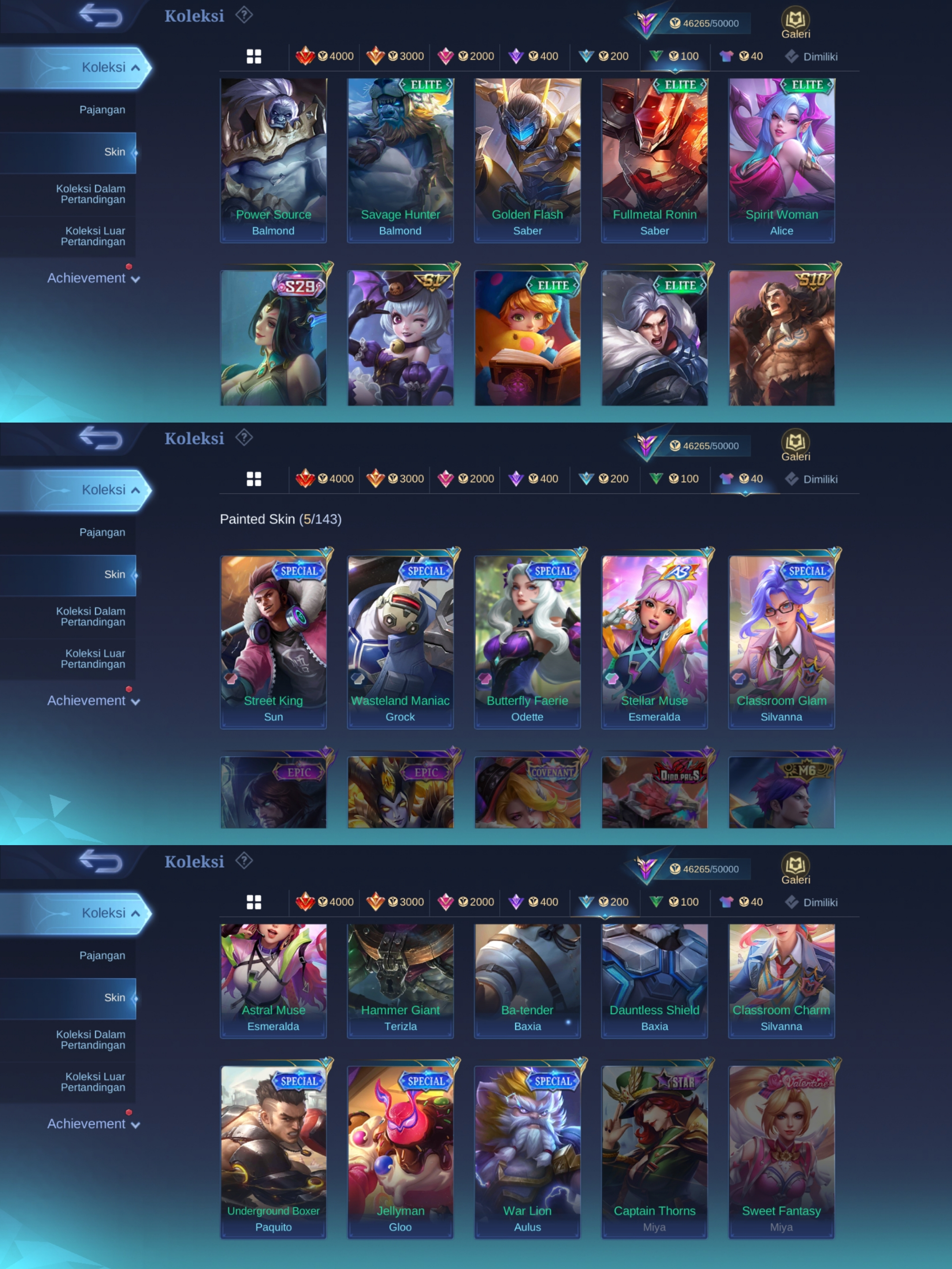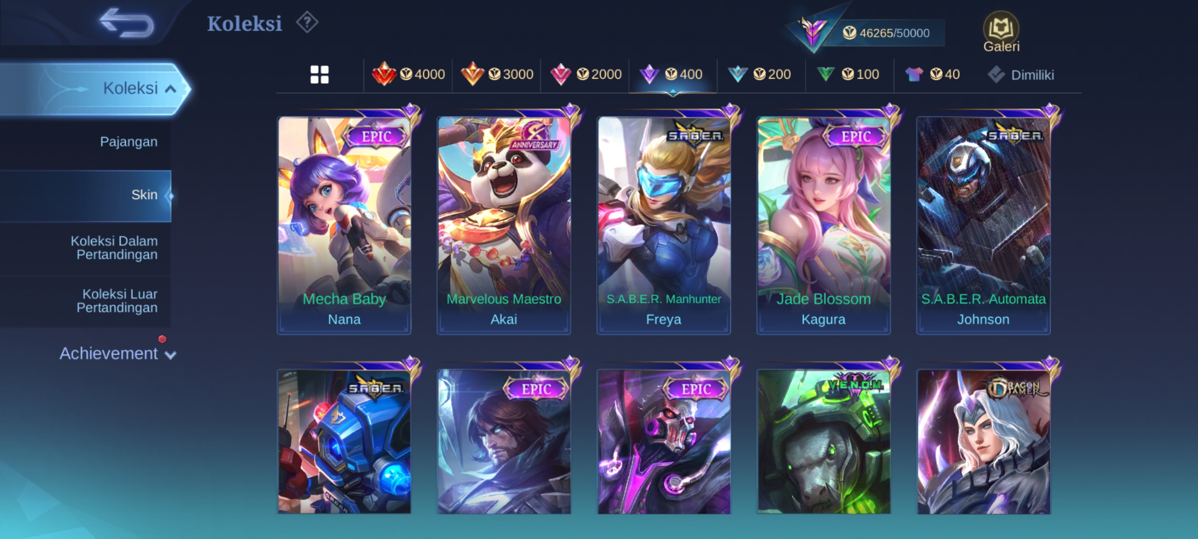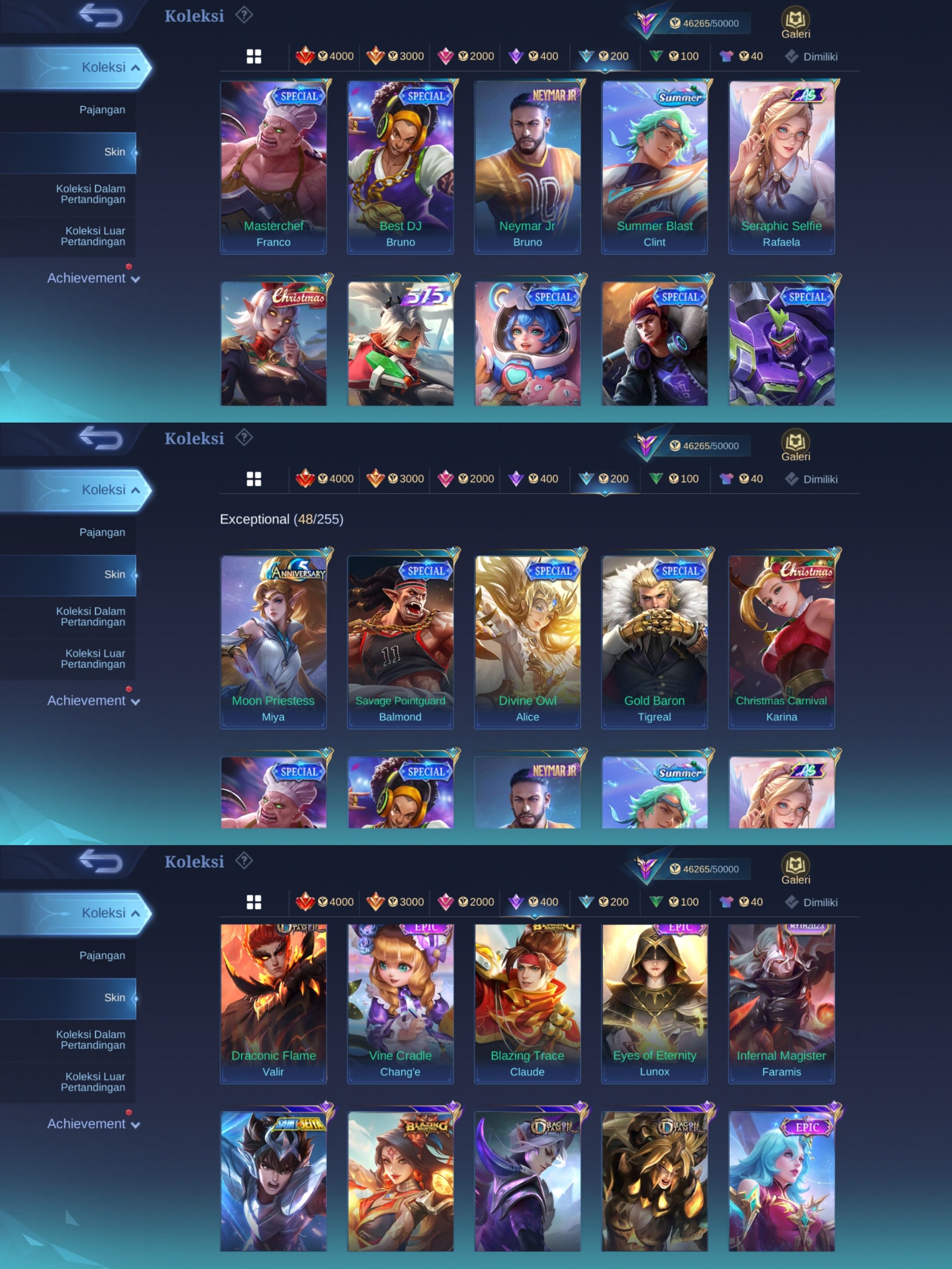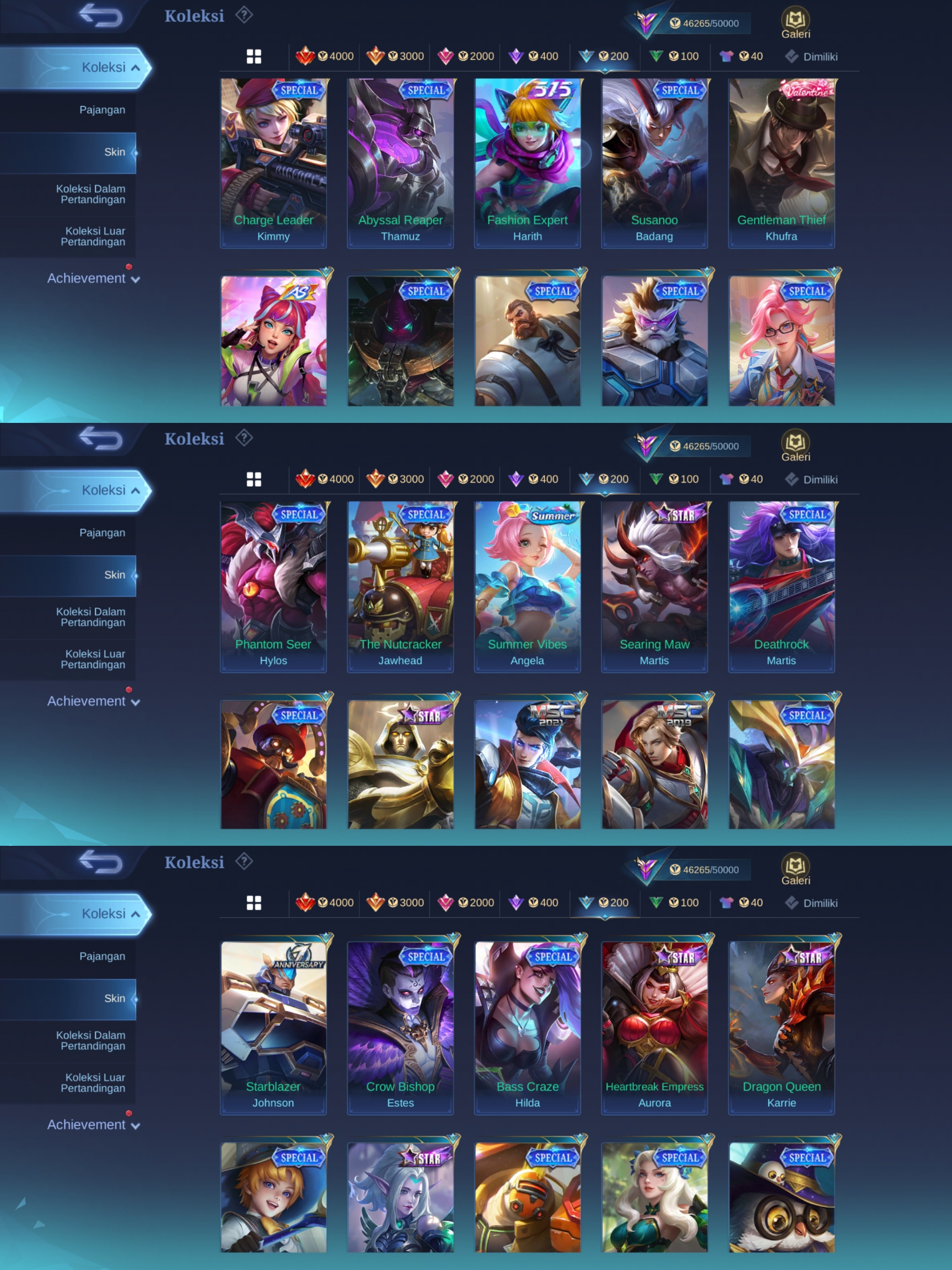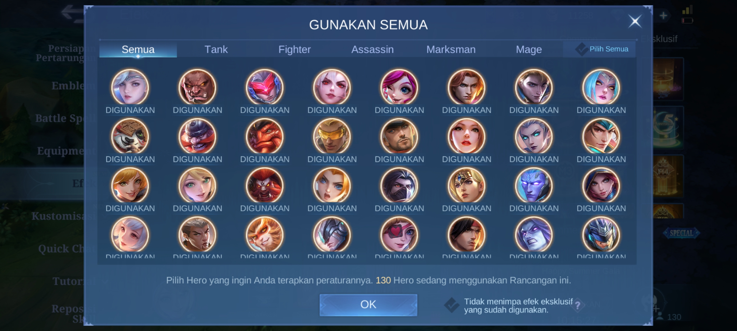BEST MEGA DEAL✨HERO 130 (MAX)✨SKIN 210✨EMBLEM MAX ✨ROGER TRANSFORMERS✨KARINA KOF✨NATALIA CC✨BADANG SEIYA ✨FARAMIS MYTH✨S.A.B.E.R 3✨DRAGON 4✨EPIC 7✨SPECIAL 27✨STAR 5✨MSC 2✨SUMMER 2✨AS 3✨SAFE ACC✨100% GUARANTED